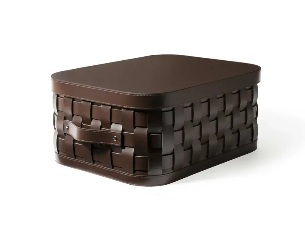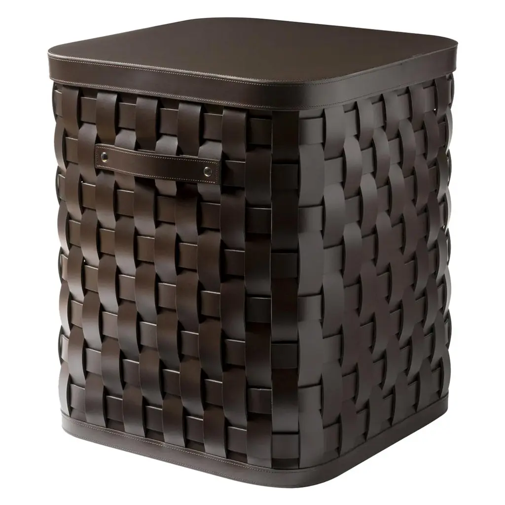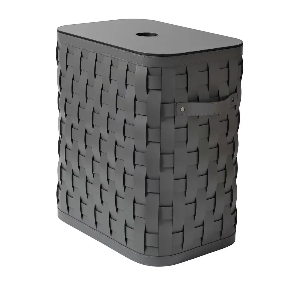 Part of the Demetra series, this tall basket is made of high quality, durable, eco-friendly handwoven leather and features a lid of the same color. This versatile basket offers an elegant solution to all the storage needs around the house: in the bedroom to store blankets, in the living room to hold magazines, or by the fireplace to hold logs. The strong quality of the leather makes it also suitable for outdoors such as patios or pools, where this piece is sure to add a stylish touch.