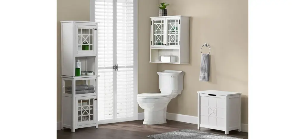 Bring style and function to your bathroom with Derby Deluxe Clothes Hamper. Distinctive styling and grid work details are designed to complement any d_cor. This versatile piece can be used in a bedroom, bathroom, mudroom, or laundry room. Features a hinged lid that lifts and stays open, so you can easily access toys, towels, and anything else stashed inside.