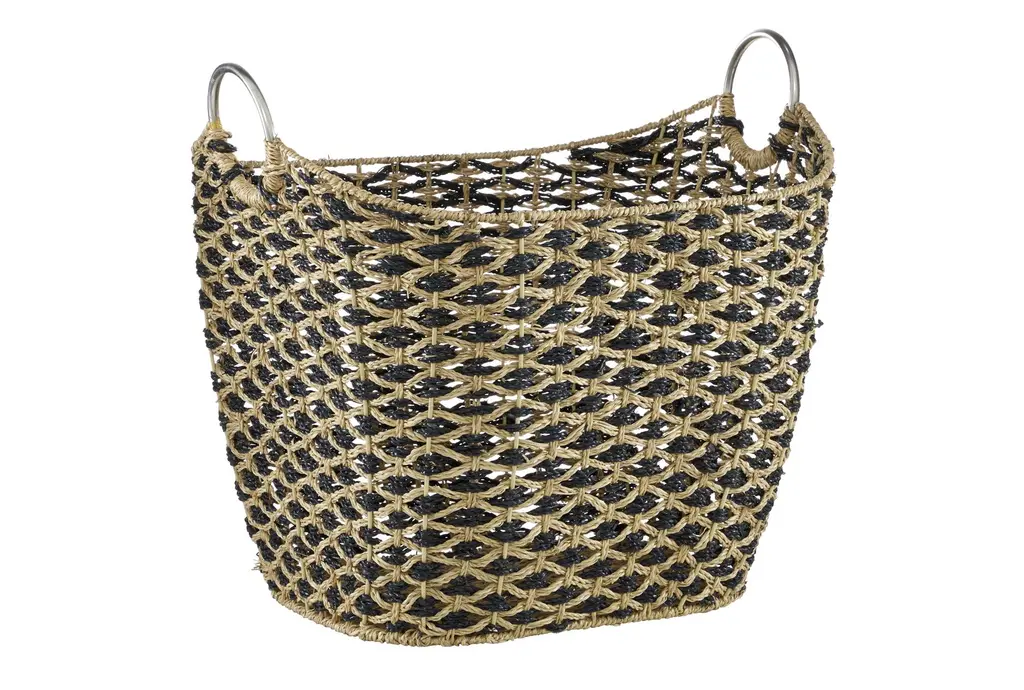 This organically woven storage basket is a versatile addition to any room, effortlessly stowing away sweaters, textiles, or bits and baubles. Handcrafted from natural seagrass and metal, its structured frame ensures strength and longevity. The timeless detailing and natural appeal of this square basket make it a sophisticated choice for every home refresh. With sleek, integrated handles, it's easy to move around, providing ample storage space for those bulky or rarely used household items. Transform your bedroom or living space with this practical yet stylish storage solution.