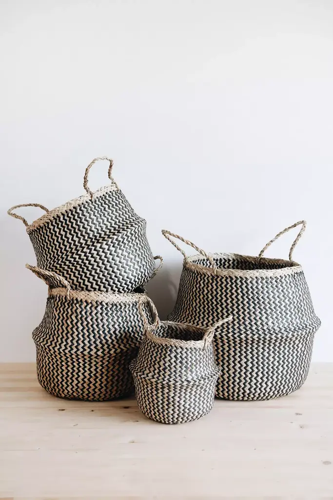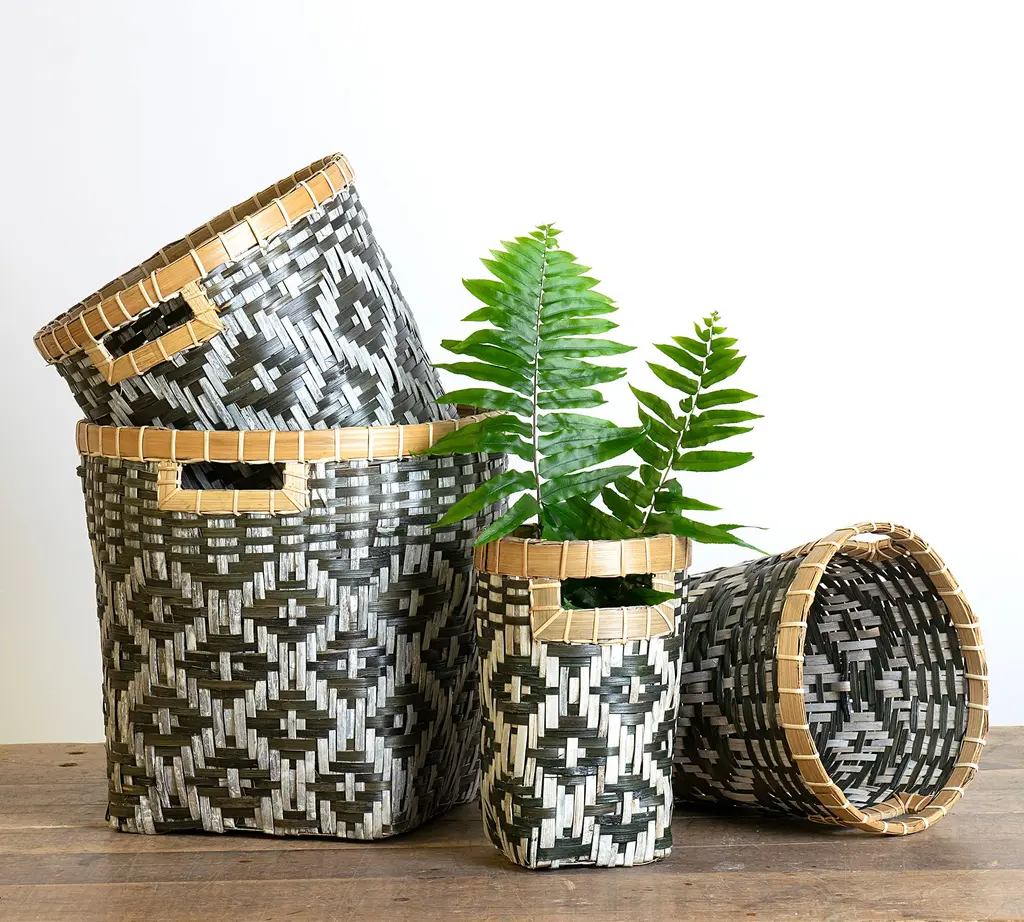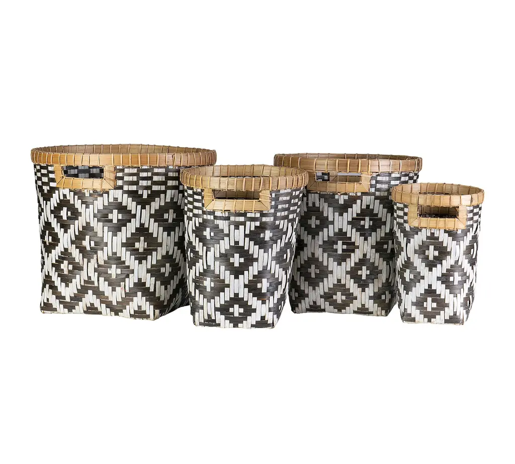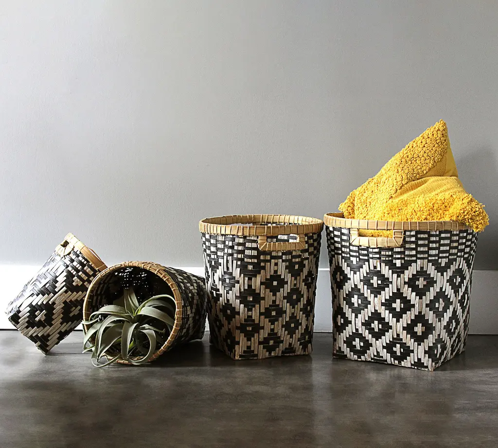 Eclectic and cool, the Dionne Woven Baskets are a fresh face in storage with their geometric pattern and wide weave. Display with a leafy plant, tuck away odds-and-ends, or line and use as a wastebasket – there’s so many ways to use this versatile set.