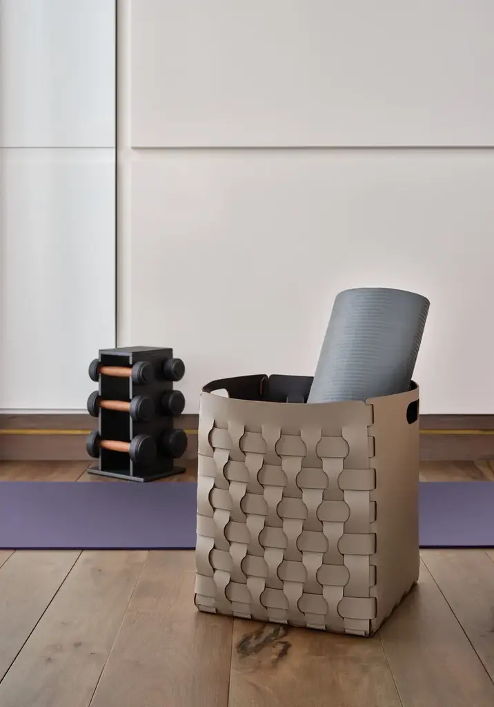 The large Dubai weave basket is an essential accessory for storing blankets, towels, and seasonal clothing in wardrobes. Made with ADJ's high-quality multifunctional leather, it is ideal for use on yachts or in spas, thanks to its excellent moisture resistance.