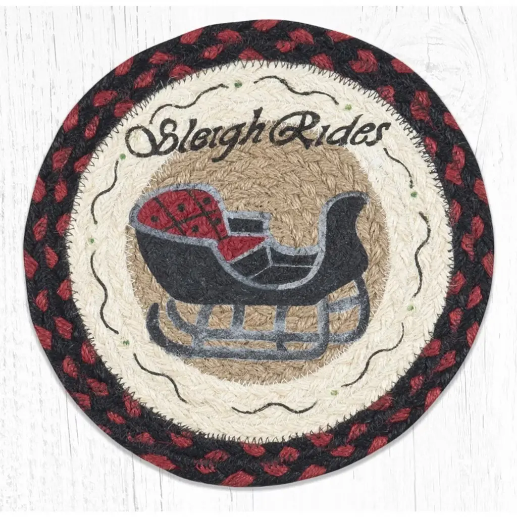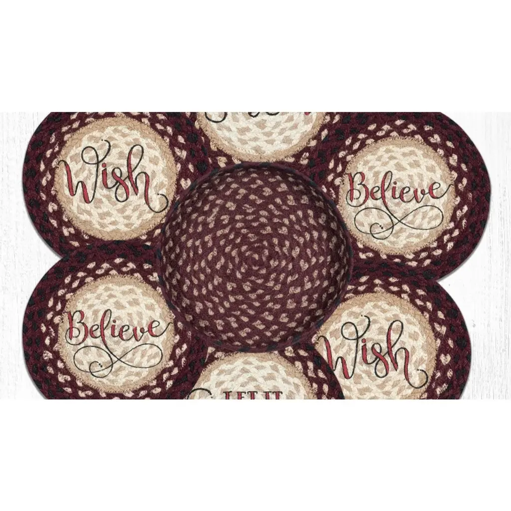 Earth Rugs Holiday Festive Round Trivets In Basket – Farmhouse Rustic Dining Set
