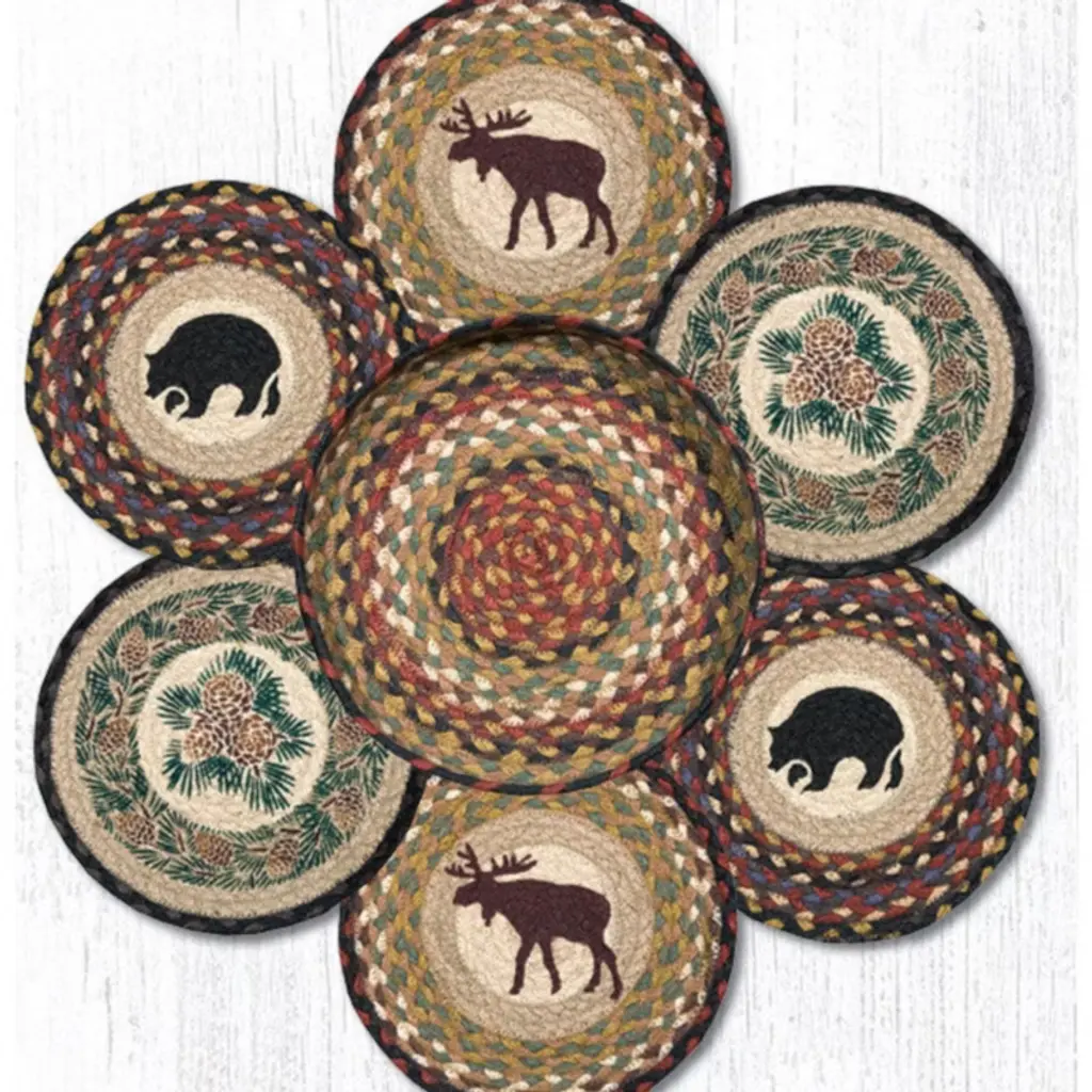 Bring rustic charm and woodland warmth to your kitchen or dining space with the Earth Rugs Wilderness Trivets in a Basket set. This 6-piece collection of 10"x10" printed round trivets features nature-inspired scenes such as moose, bears, pine trees, and cabins — perfect for lovers of the outdoors. Each eco-friendly jute trivet is both heat-resistant and stylish, making them as functional as they are decorative. The set comes neatly arranged in a coordinating woven basket for convenient storage or beautiful gifting. Key Features: Material: 100% eco-friendly braided jute Design: Wilderness-themed with prints including forest animals and nature scenes Use: Heat protection for countertops, tables, or decorative accents Storage: Comes with a handcrafted matching jute basket