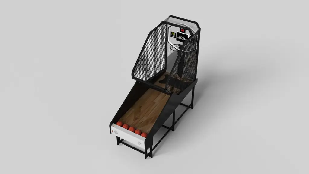 With an open metal foundation, our Beso skeeball game is a unique expression of contemporary forms and negative space. This skeeball game is handcrafted by our master artisans with a rectangle-in-rectangle base that contrasts against the round targets. The aesthetic is simple yet sleek, combining superior playability with uncompromised style. Digital components, including LED lights and sound effects, are built into the design.Size:99"L x 39"W x 101" H