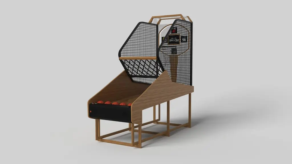 With an open metal foundation, our Beso basketball table game is a unique expression of contemporary forms and negative space. This game is handcrafted by our master artisans with a rectangle-in-rectangle base that contrasts against the round targets. The aesthetic is simple yet sleek, combining superior playability with uncompromised style. Digital components, including LED lights and sound effects, are built into the design.Size:99"L x 39"W x 101" H