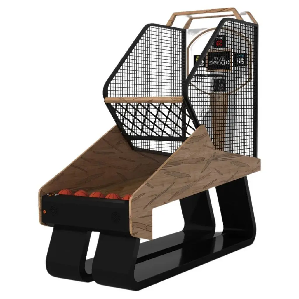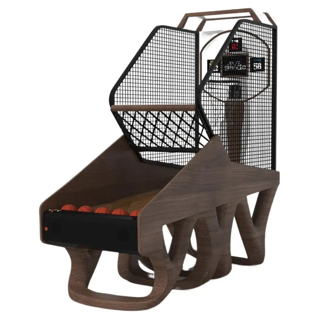 Inspired by the work of Antoni Gaudi and the movement of Catalan Modernism, the Draco basketball game boasts bold style with smooth, curved legs and built in digital components for energetic game play. Expertly crafted from solid wood, this game features a high-end, contemporary design.Size:99"L x 39"W x 101" H
