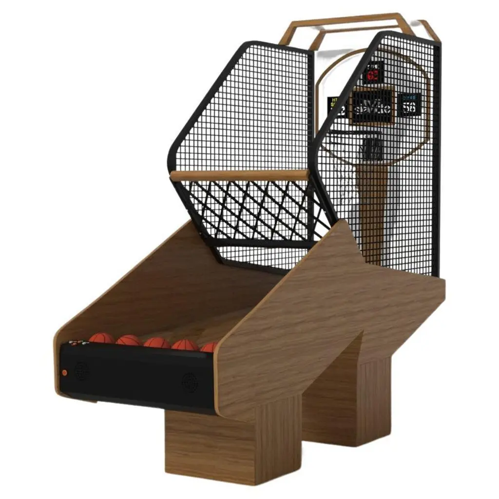 The Kors basketball game is a superior example of contrasting geometric forms. This table features an angular base that highlights the beauty of negative space from the front view. From the side view, it offers a completely different perspective with unexpected dimensional details that demand attention. The end result is a clean, modern design that offers equal parts style, sophistication, and superior playability. Digital components, including LED lights, are built in and concealed inside.Size:99"L x 39"W x 101" H