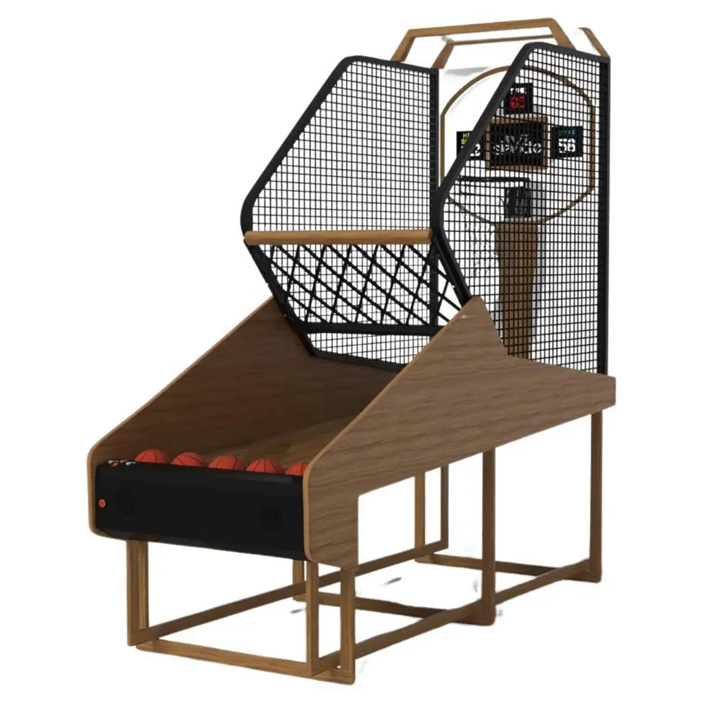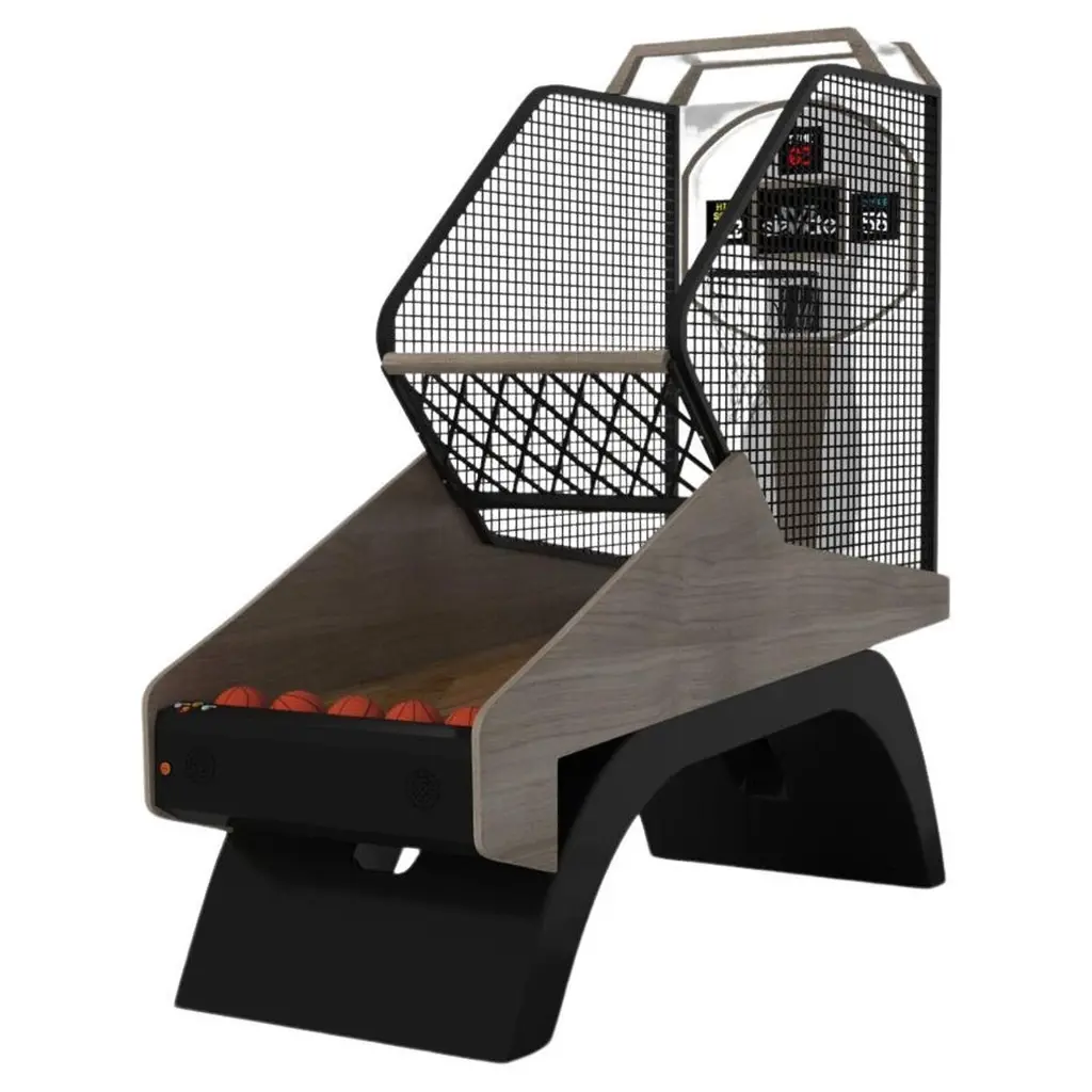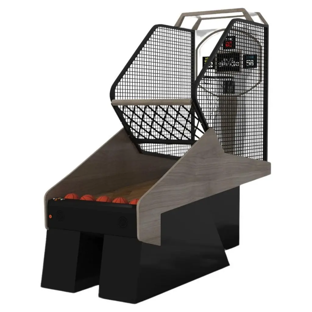 The Kors basketball game is a superior example of contrasting geometric forms. This table features an angular base that highlights the beauty of negative space from the front view. From the side view, it offers a completely different perspective with unexpected dimensional details that demand attention. The end result is a clean, modern design that offers equal parts style, sophistication, and superior playability. Digital components, including LED lights, are built in and concealed inside.Size:99"L x 39"W x 101" H