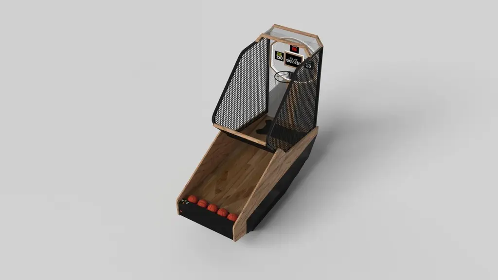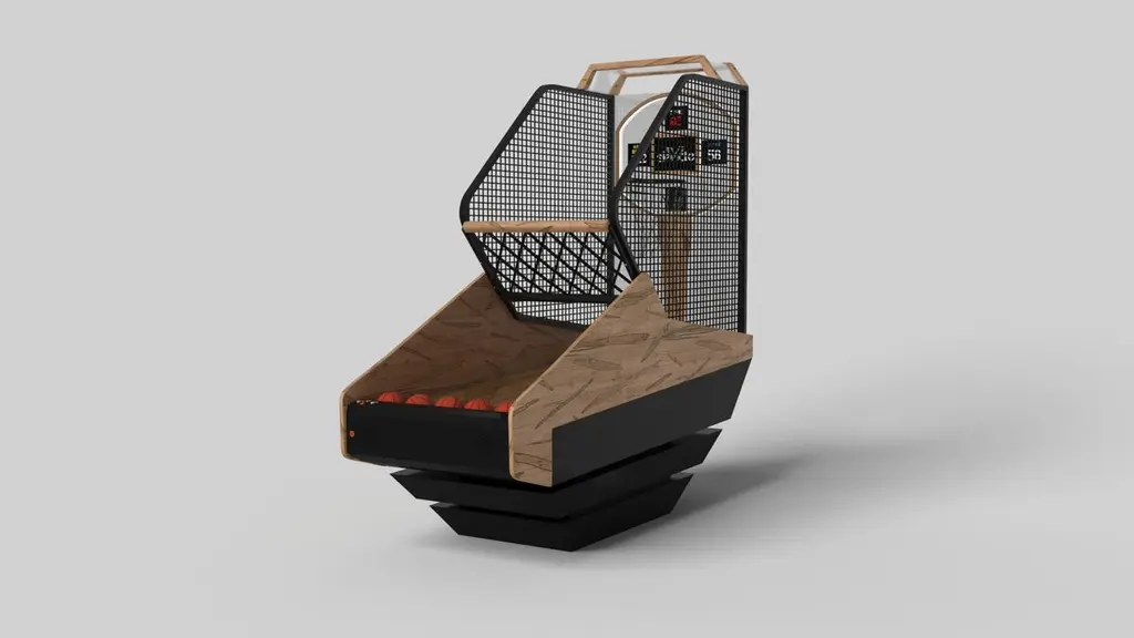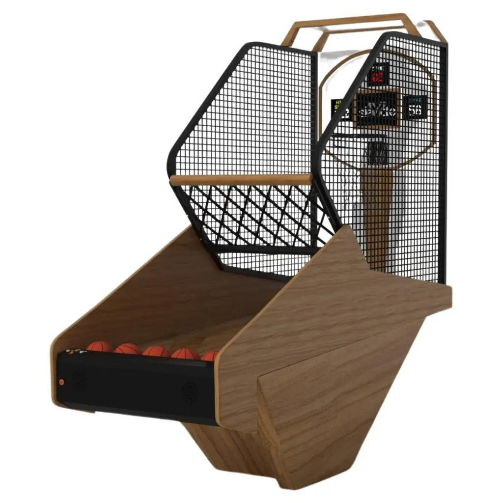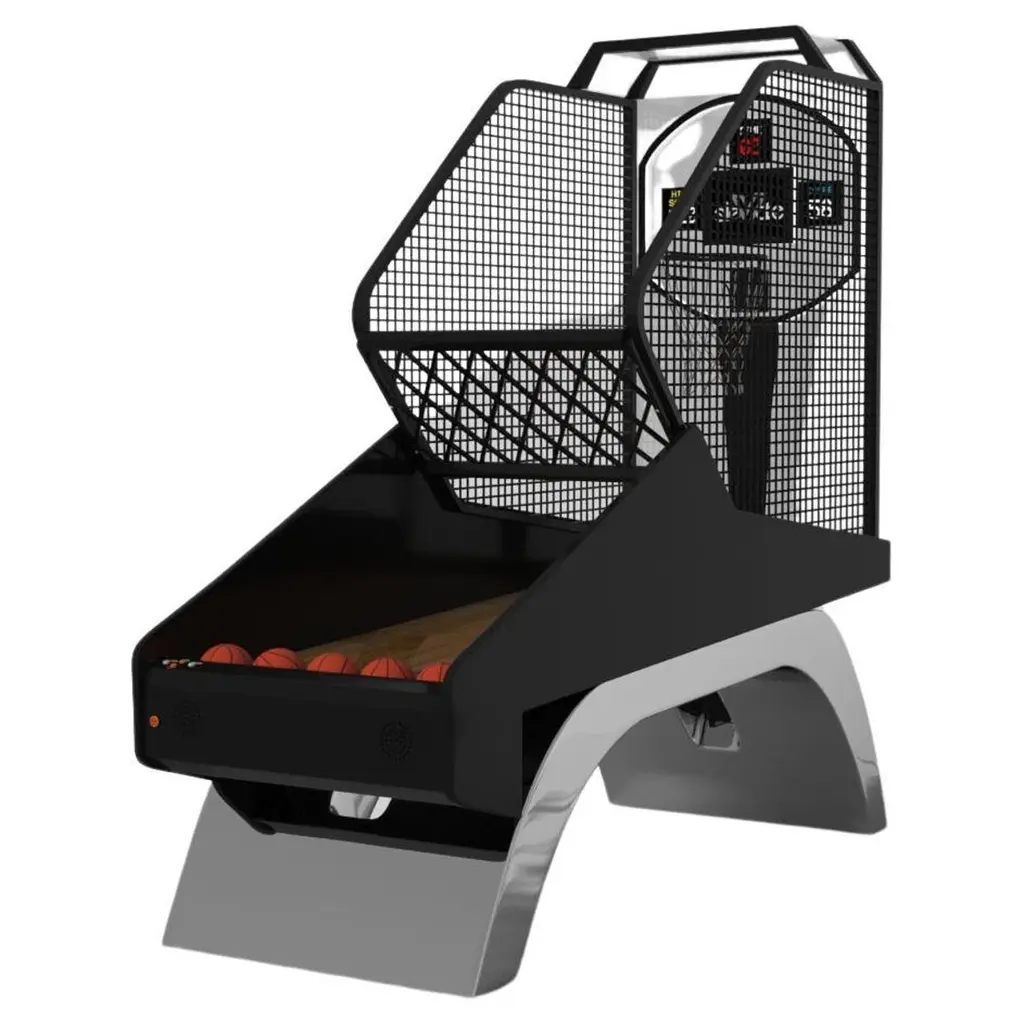 Three solid pieces of metal seemingly float around a concealed center base, making the Louve basketball game one of our most mind-bending designs. With built-in digital components such as LED lights and sound effects, this contemporary design features a smooth finish with a tapered base that creates a timeless pyramidal form.Size:99"L x 39"W x 101" H