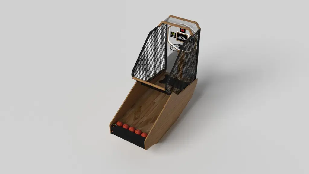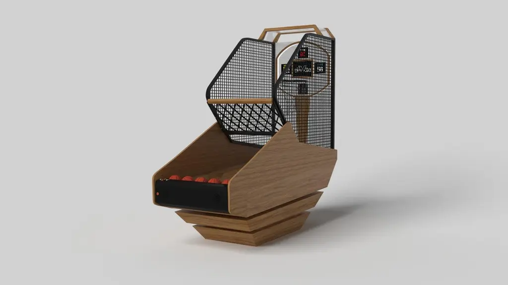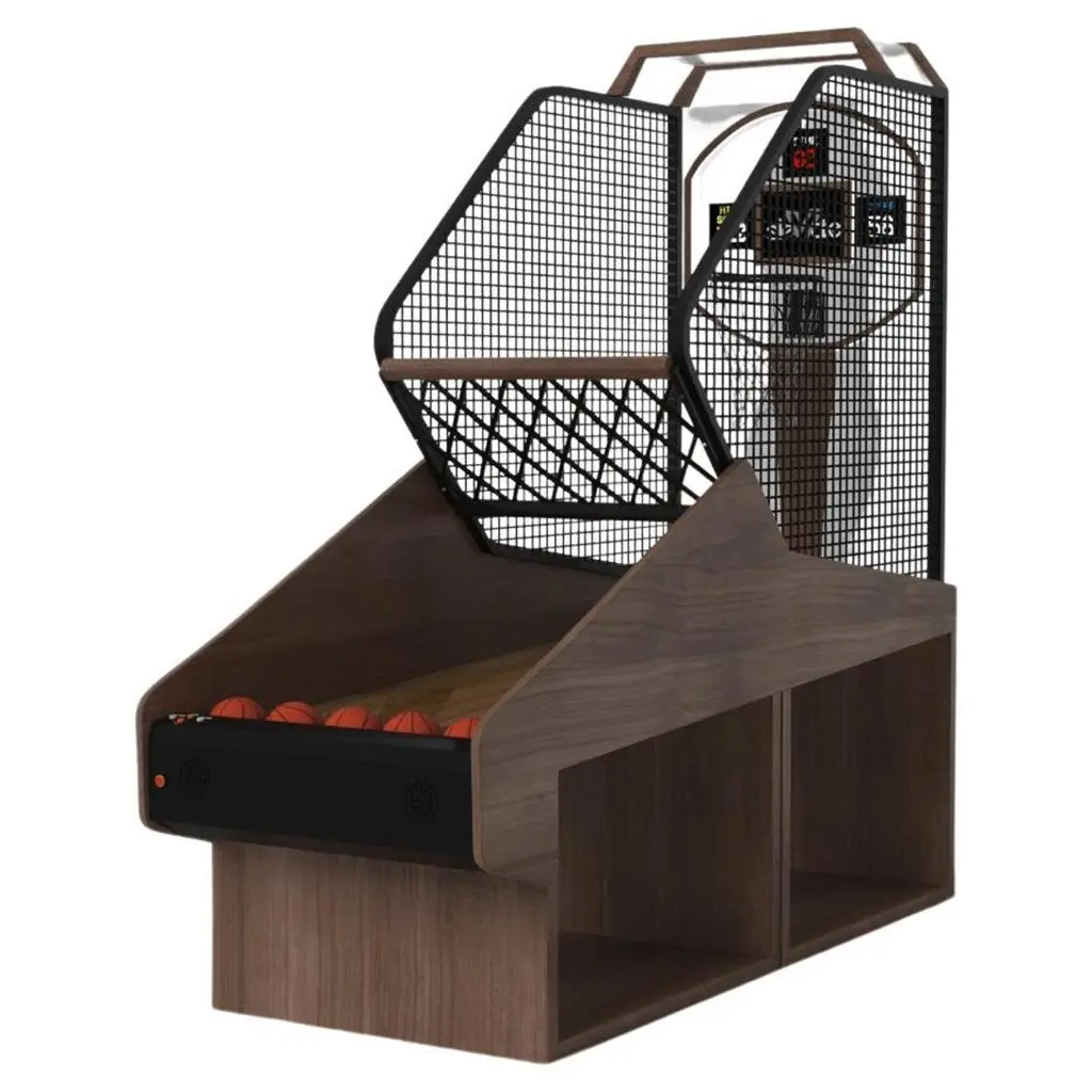 Three solid pieces of metal seemingly float around a concealed center base, making the Louve basketball game one of our most mind-bending designs. With built-in digital components such as LED lights and sound effects, this contemporary design features a smooth finish with a tapered base that creates a timeless pyramidal form.Size:99"L x 39"W x 101" H