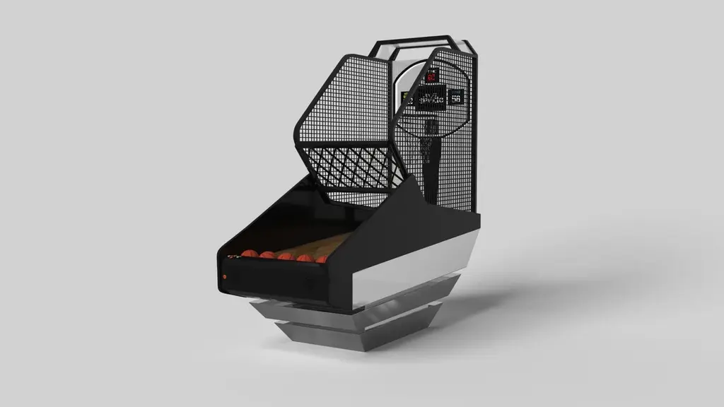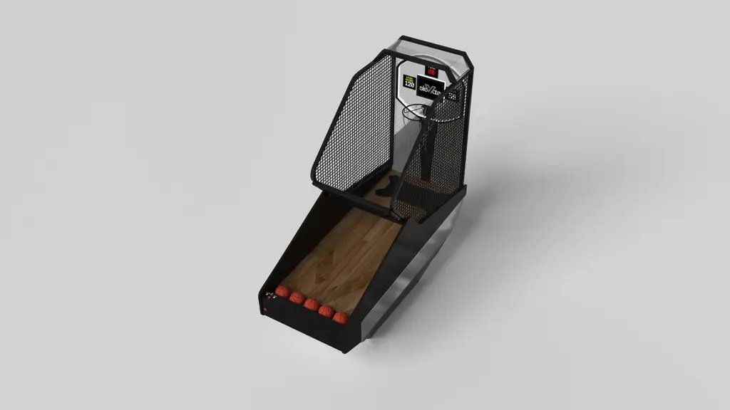 Three solid pieces of metal seemingly float around a concealed center base, making the Louve basketball game one of our most mind-bending designs. With built-in digital components such as LED lights and sound effects, this contemporary design features a smooth finish with a tapered base that creates a timeless pyramidal form.Size:99"L x 39"W x 101" H