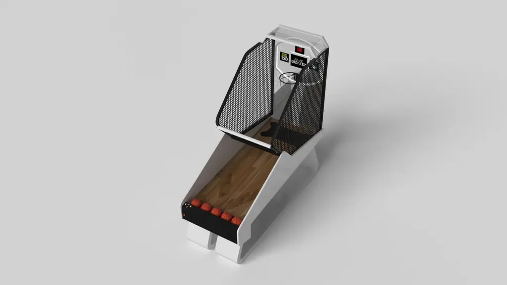 An open base with sweeping curves and smooth edges imparts a light, airy feel upon the Luge basketball game. Evoking a sense of speed and the spirit of continuous movement, this exclusive game features a split base with open sides and rectangular panels that counterbalance the infinite curvature of the rounded base. It's detailed with built-in digital components, including LED lights and sound effects.Size:99"L x 39"W x 101" H