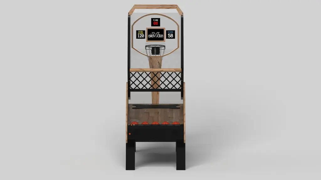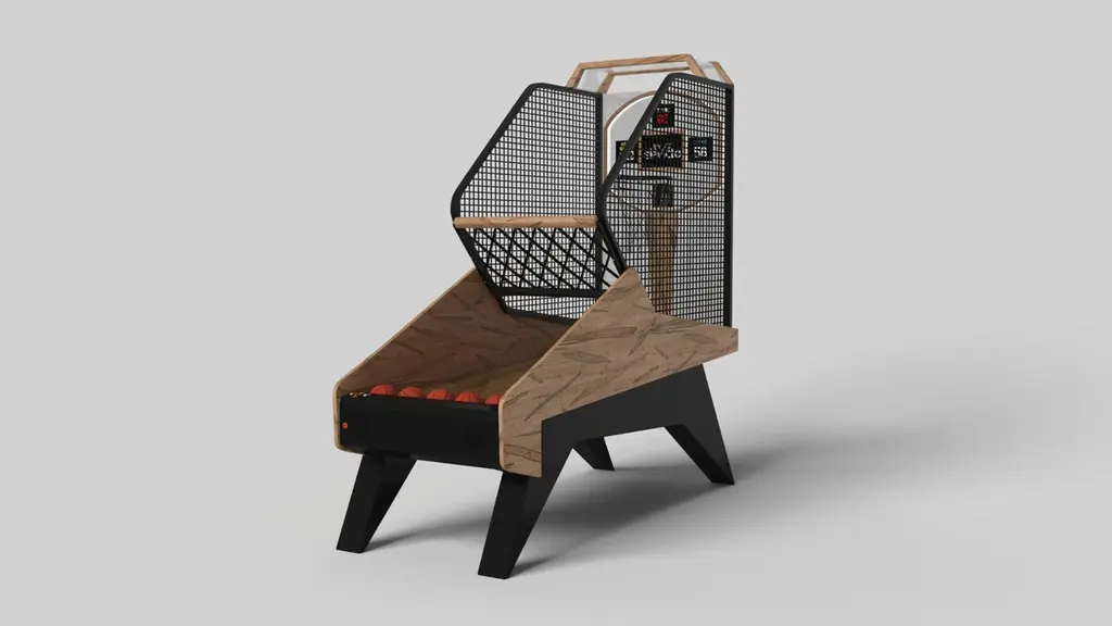 Simple yet sophisticated, the Mantis basketball game puts a fresh, modern spin on a classic design. Sharp angles and tapered legs provide sleek stability, while built-in digital components add an air of exuberance and an energetic spirit. Handcrafted from solid wood, this game features a bold design with a smooth edges and LED lights.Size:99"L x 39"W x 101" H