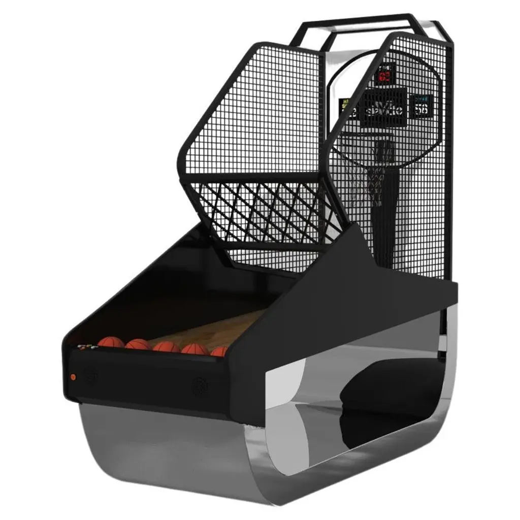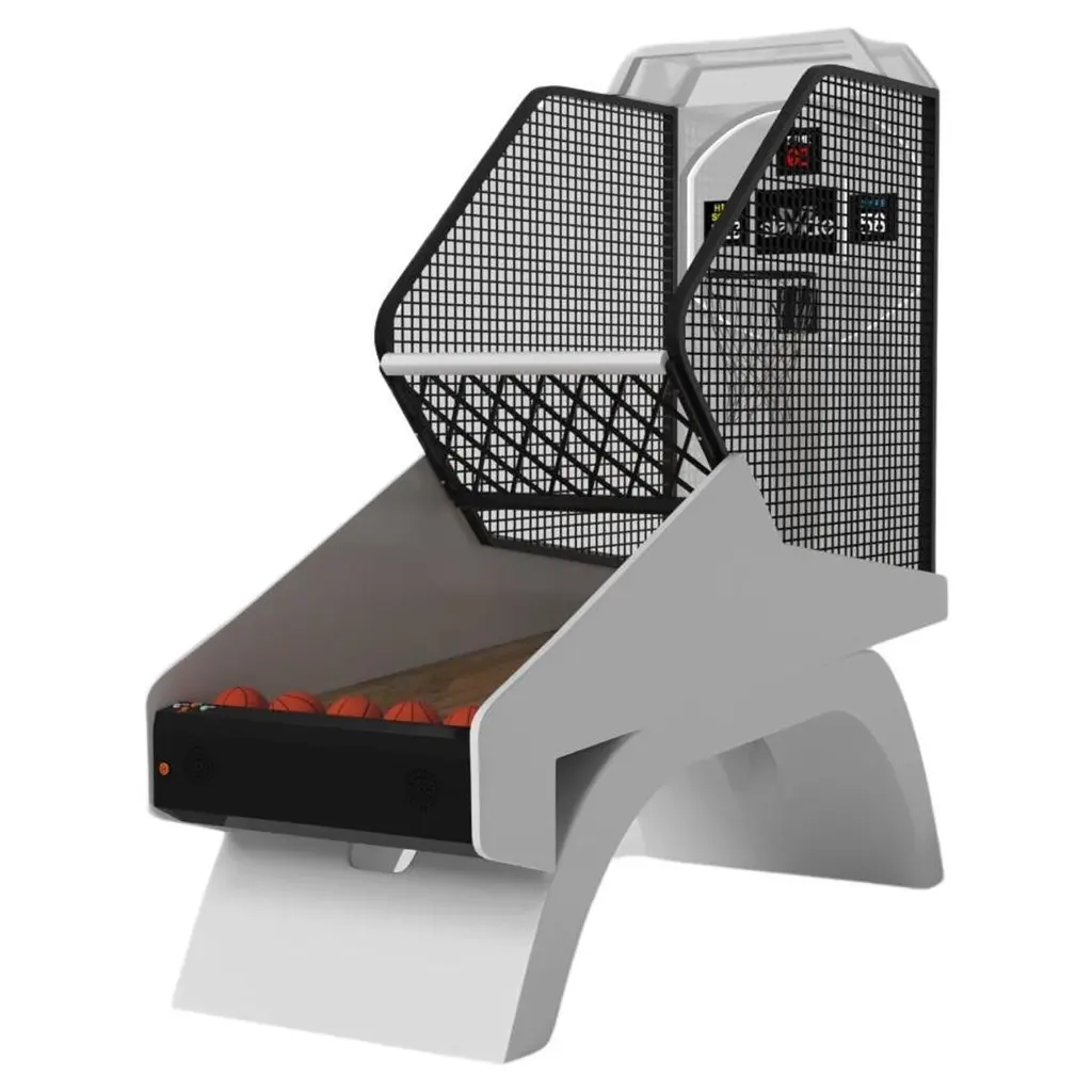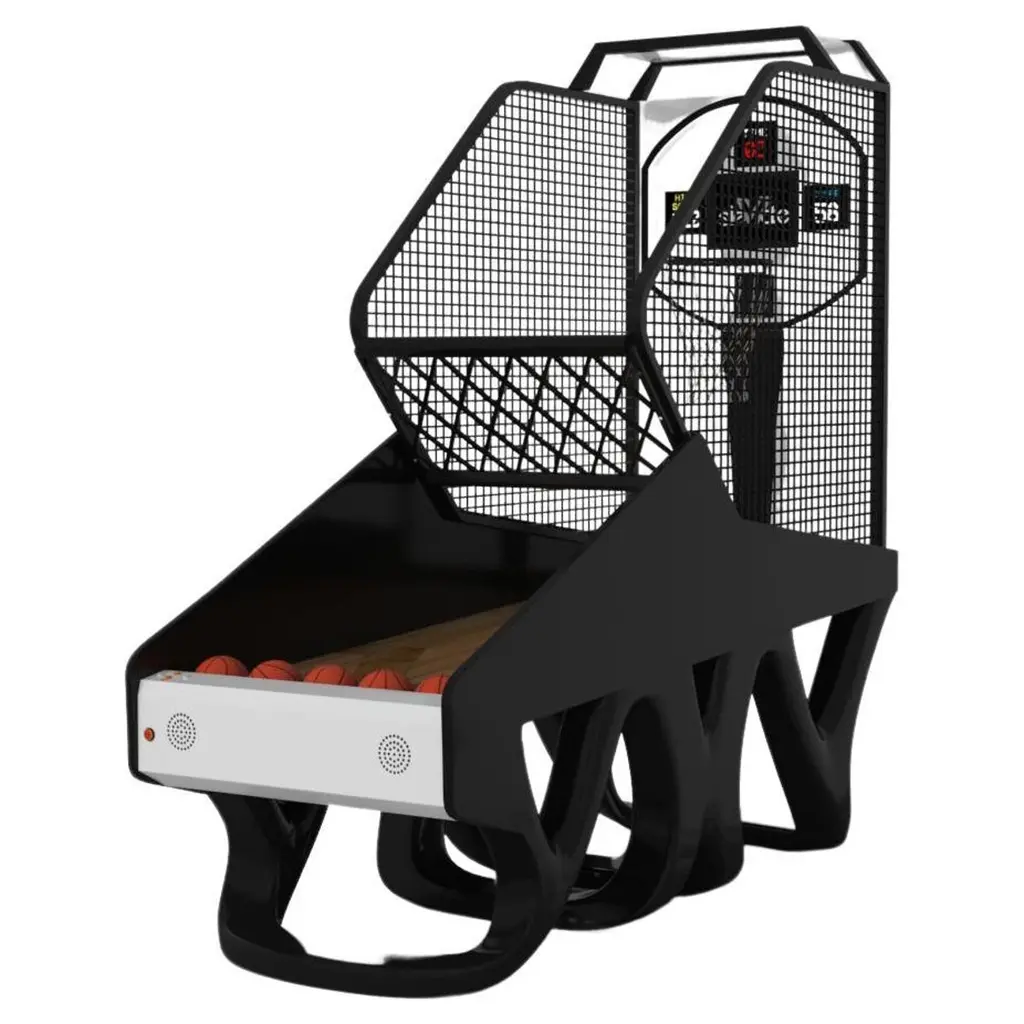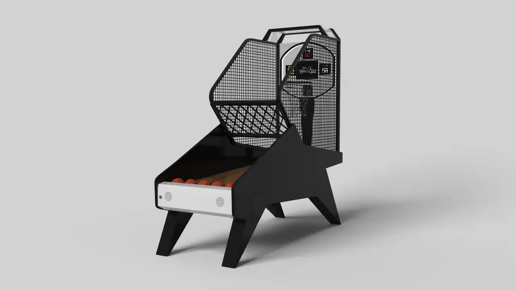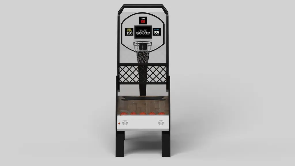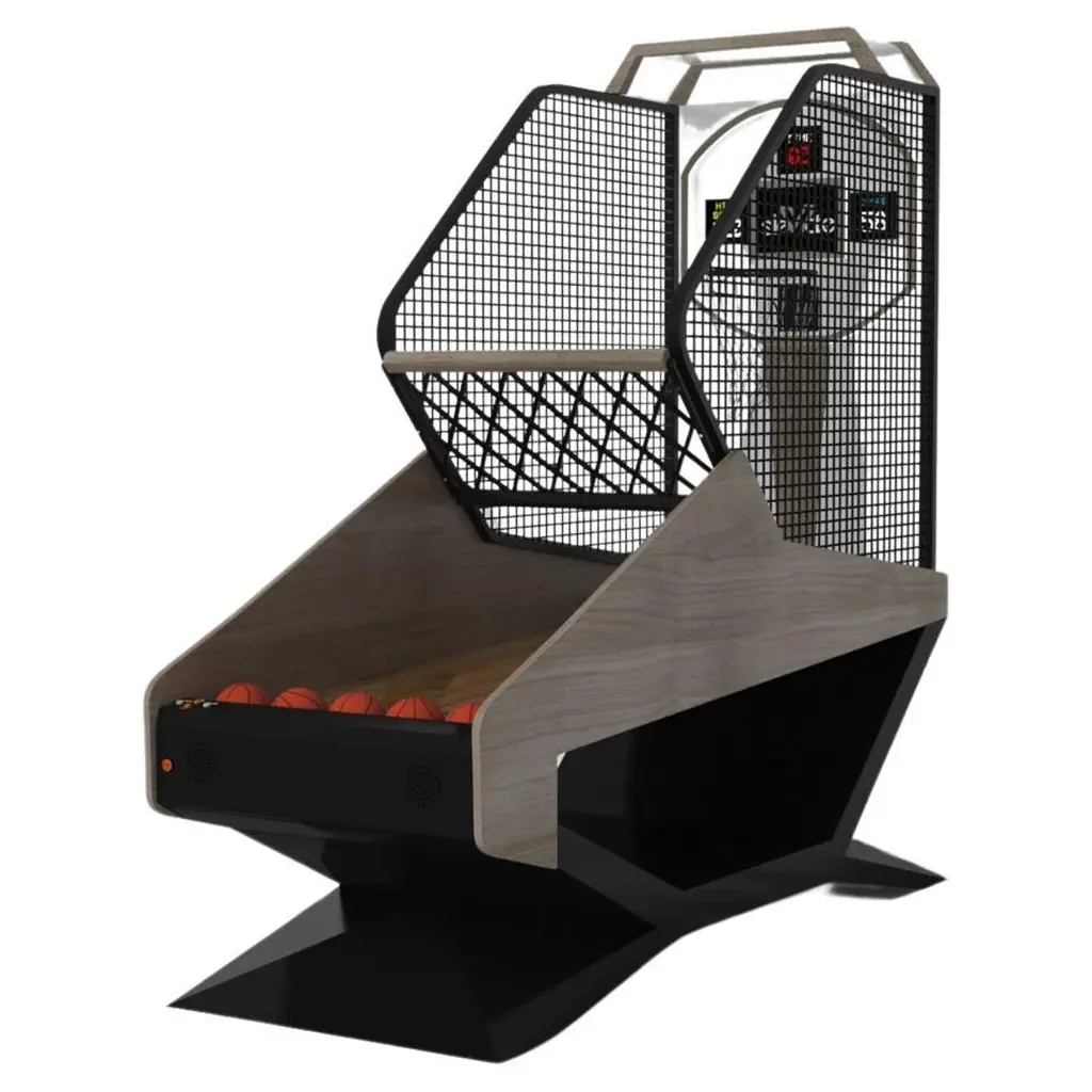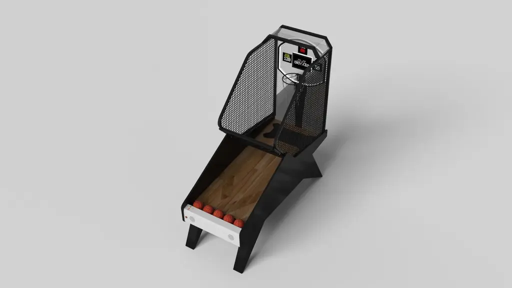 Simple yet sophisticated, the Mantis basketball game puts a fresh, modern spin on a classic design. Sharp angles and tapered legs provide sleek stability, while built-in digital components add an air of exuberance and an energetic spirit. Handcrafted from solid wood, this game features a bold design with a smooth edges and LED lights.Size:99"L x 39"W x 101" H
