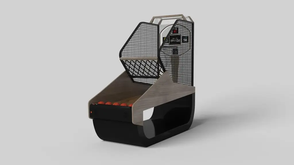 Handcrafted with intricate accents and a precision-carved curved base, the Sid basketball game encompasses a series of smooth edges, distinctive details, and unconventional elements in one unique expression of luxury design. Built by hand from solid wood, this contemporary game boasts a signature blend of expert craftsmanship and novel composition. Digital components, including LED lights and sound effects, are built into the design.Size:99"L x 39"W x 101" H