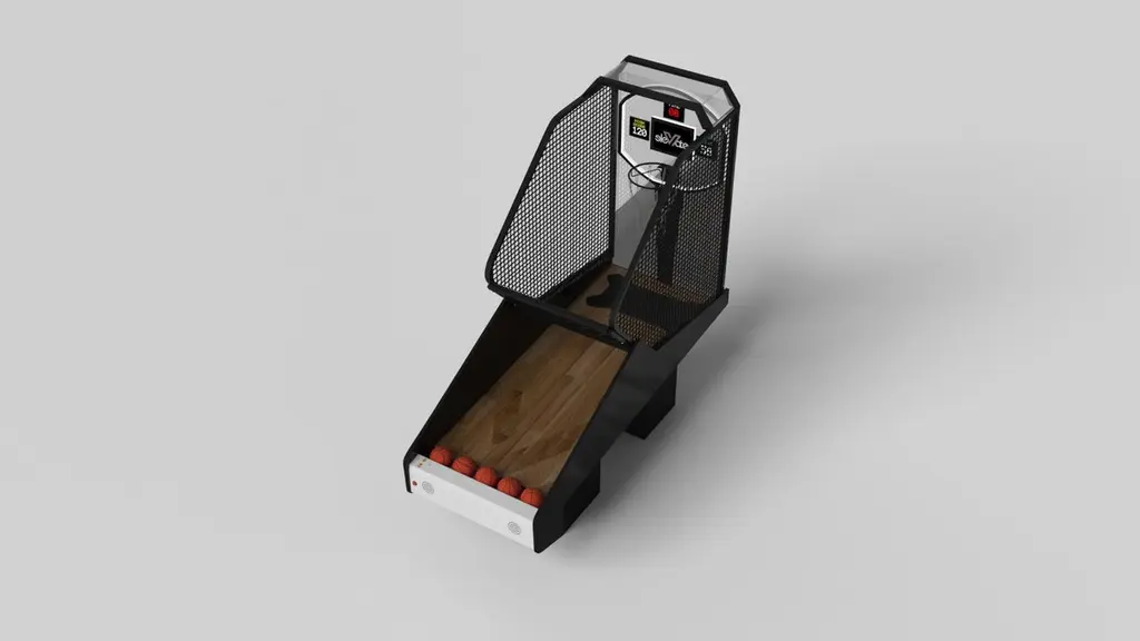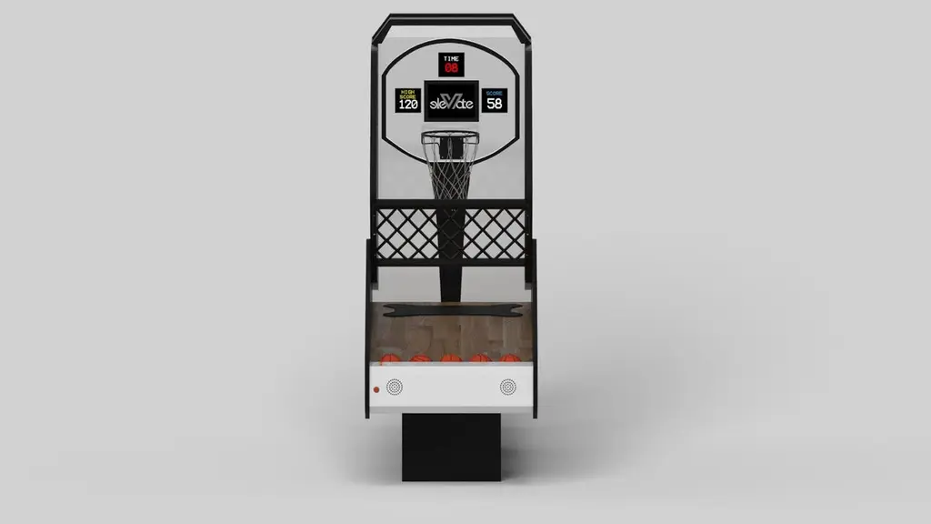 Minimalist design meets opulent elegance in the Trestle basketball game. Detailed with digital components such as sound effects and LED lights, this contemporary game is expertly crafted. Square block legs give it a stark, geometric look that contributes to its timeless appeal.Size:99"L x 39"W x 101" H
