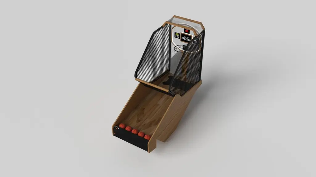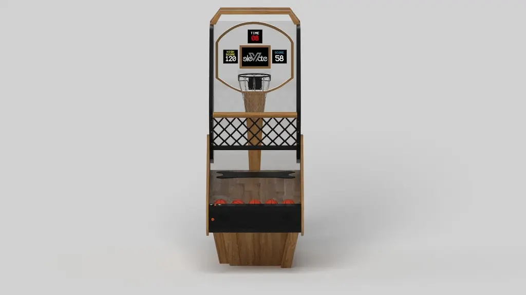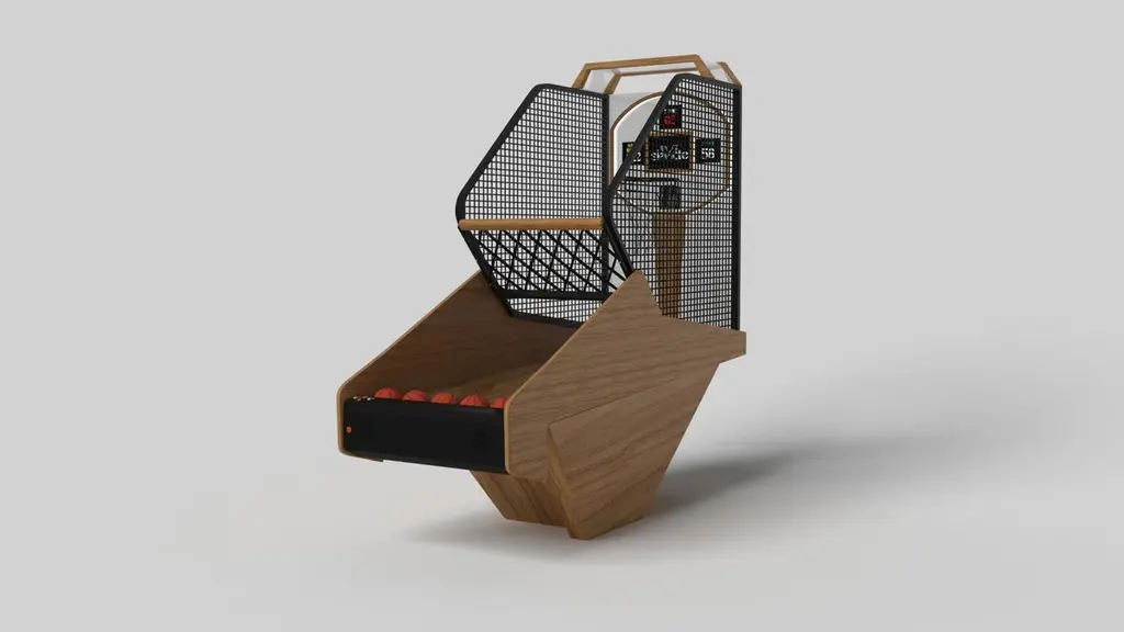 Handcrafted with clean lines, sharp angles, and a pyramid base, the Vogue basketball game strikes the perfect balance between sporty competition and contemporary design. Timeless in its appeal and detailed with built-in digital components, this custom game is beautifully crafted from durable wood with contrast accents that give it a cutting edge look.Size:99"L x 39"W x 101" H