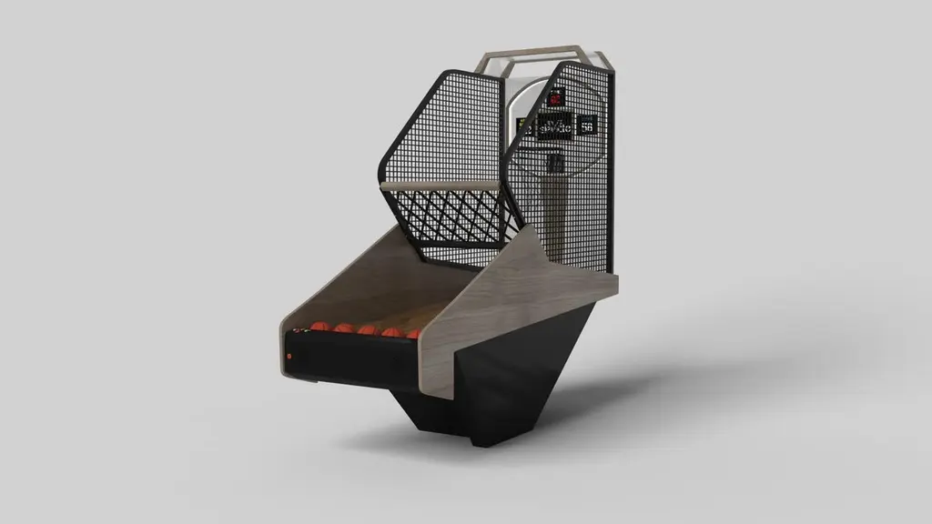 Handcrafted with clean lines, sharp angles, and a pyramid base, the Vogue basketball game strikes the perfect balance between sporty competition and contemporary design. Timeless in its appeal and detailed with built-in digital components, this custom game is beautifully crafted from durable wood with contrast accents that give it a cutting edge look.Size:99"L x 39"W x 101" H