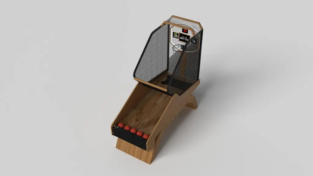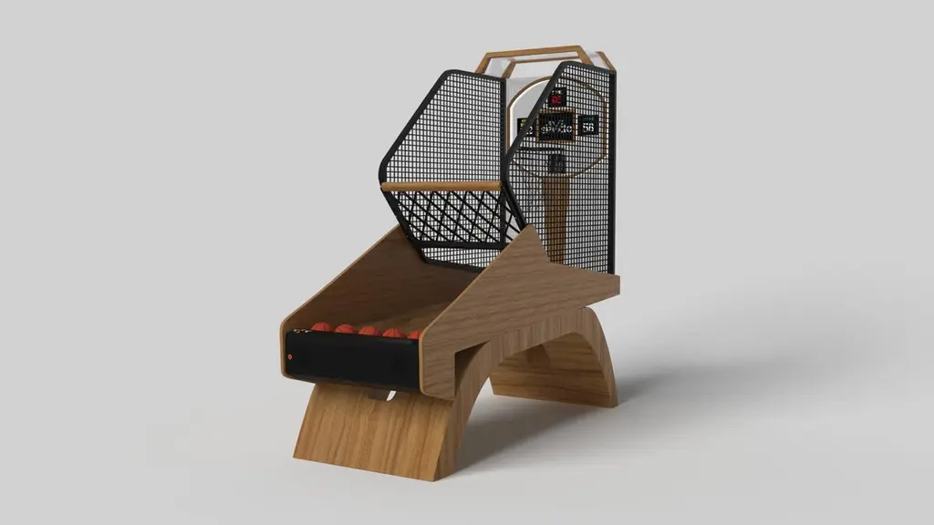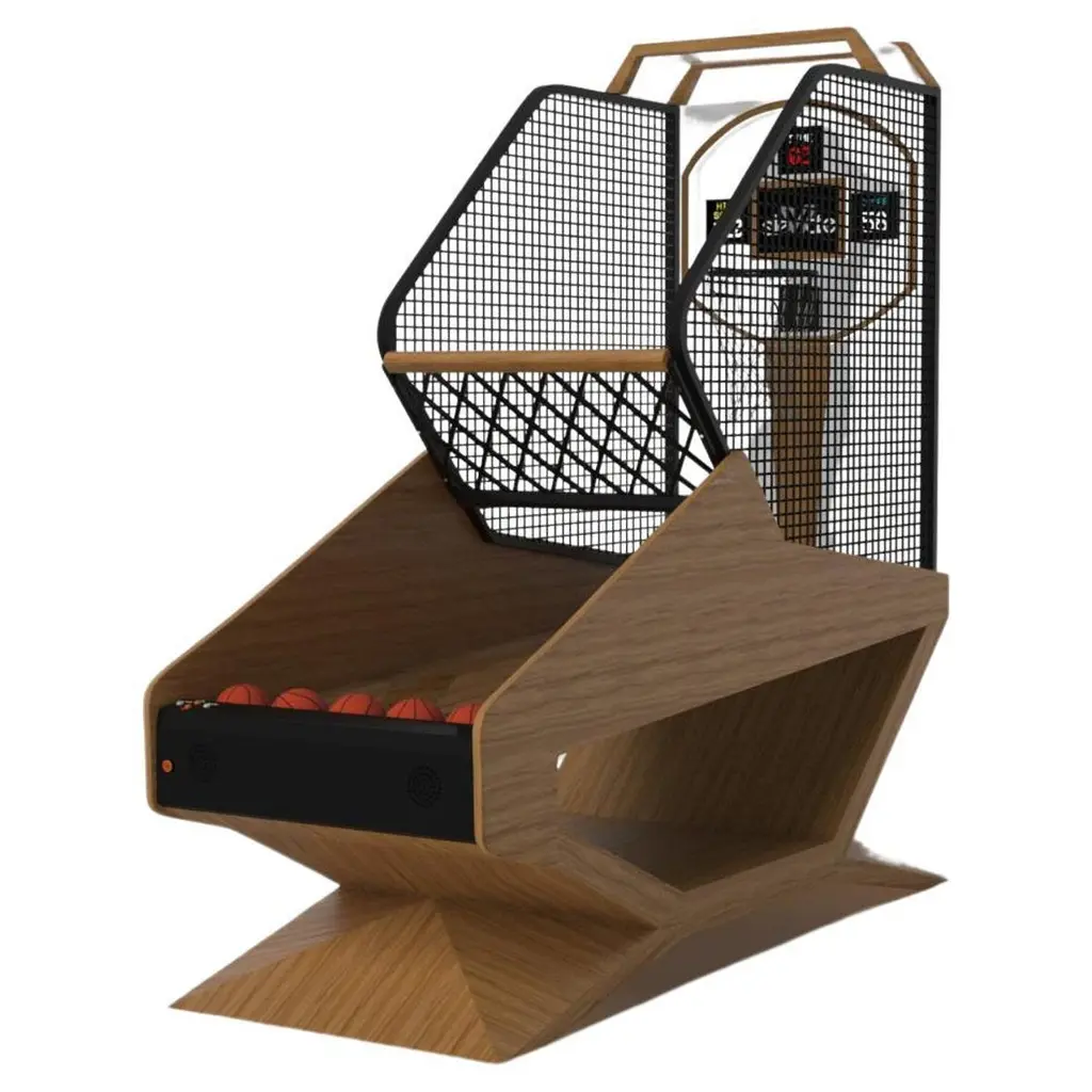 An open, arched base balances beautifully against the hard edges of the back support, making the Zenith basketball game a striking juxtaposition of modern, geometric forms. Minimalist yet luxurious, this design is handcrafted from solid wood and detailed with digital components, including LED lights, that add a vibrant, energetic sense of spirit.Size:99"L x 39"W x 101" H