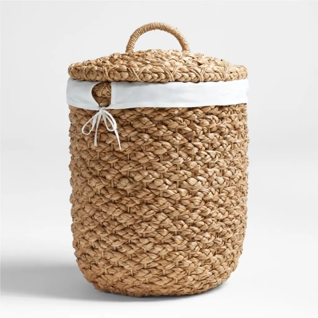 Chunky braids of rustic bankuan leaves weave a textural hamper, ready to stow laundry in the included liner bag. This casual storage option adds a warm, natural touch to a bedroom, bathroom or laundry room.
