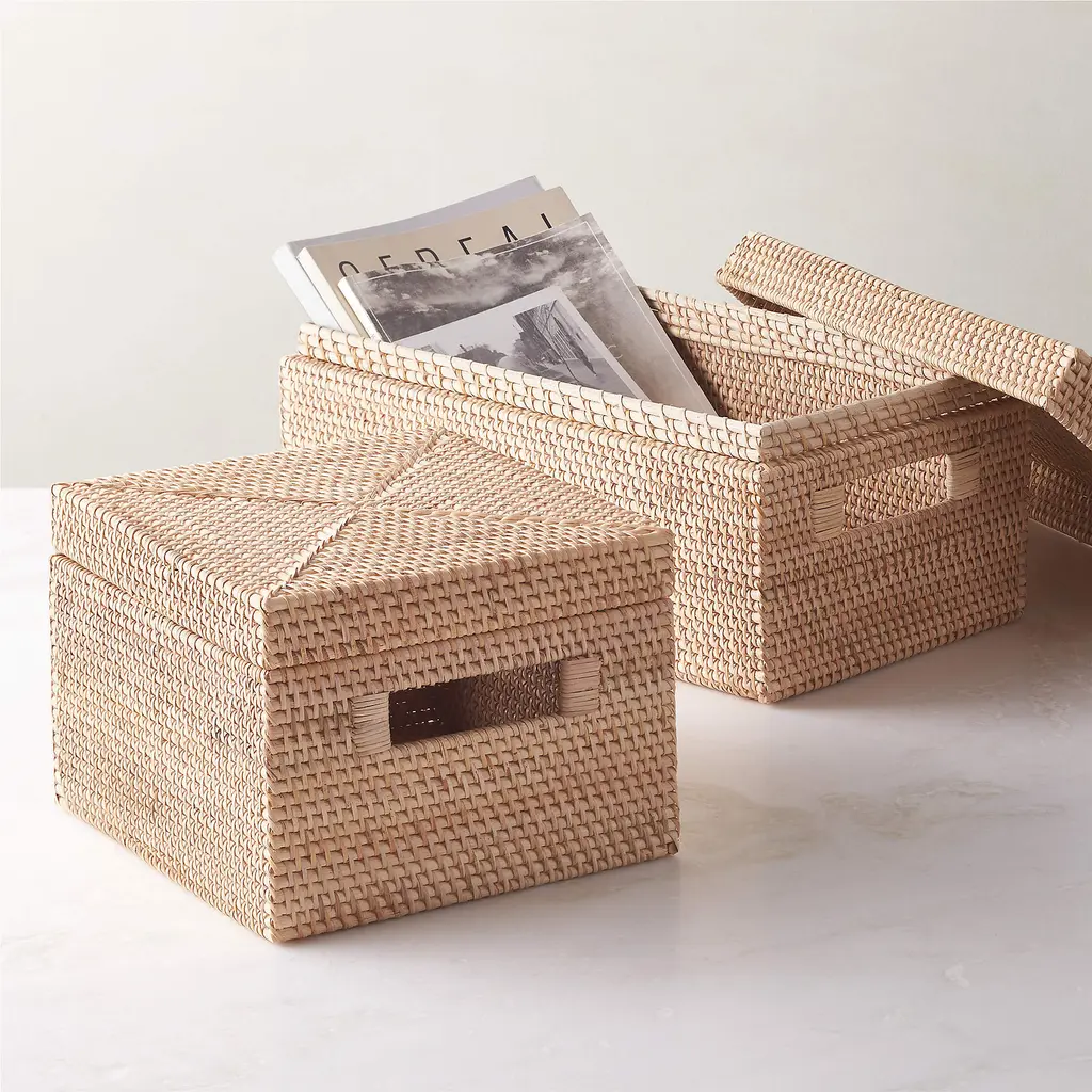 Emme Rectangular Handwoven Natural Rattan Storage Basket