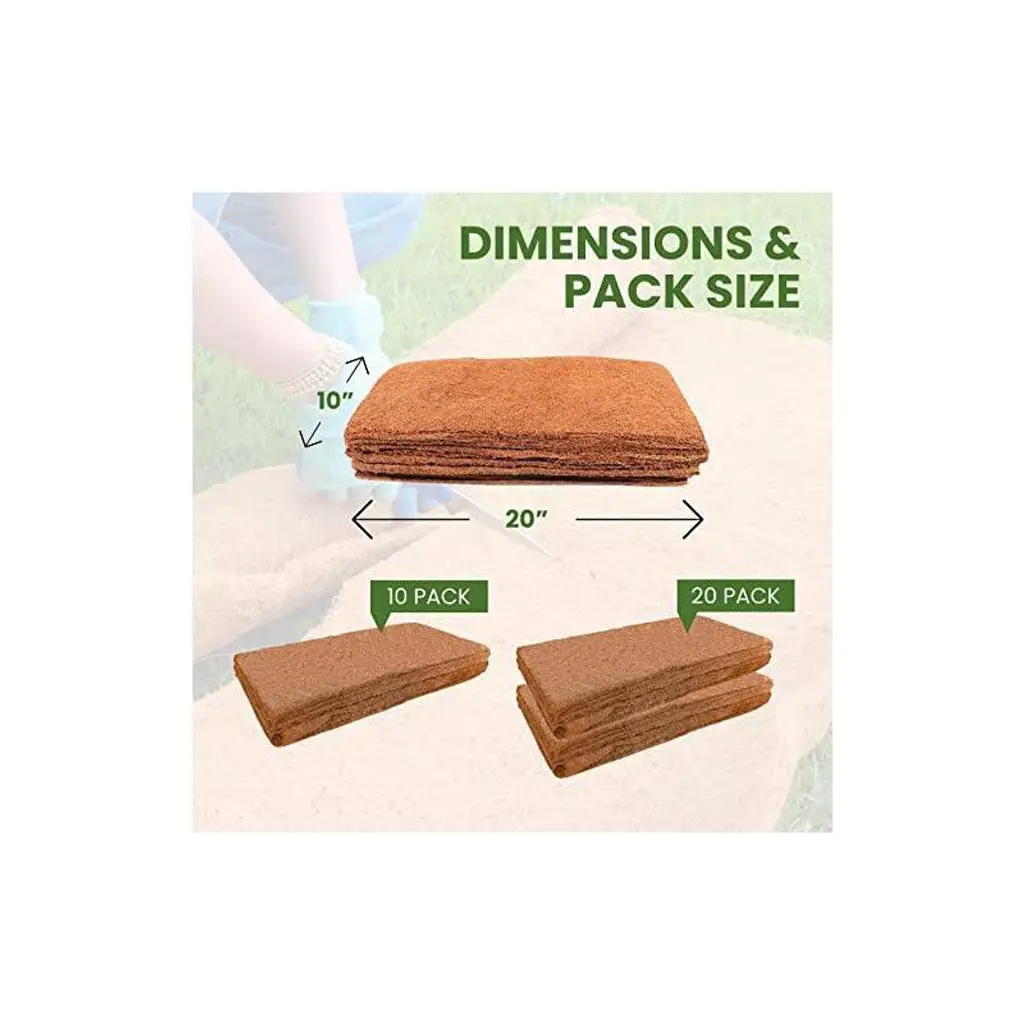 This coco coir grow mats are made from sustainable and thickly woven coconut fibers, which means they won't fall apart. The grow mats can be used as mulch mats which are great support for plants, vegetables, and newly planted flowers. Grow mats can also be used as plant covers to retain water which prevents roots from drying out. The natural growing media is used in hydroponics, to grow microgreens, or for seed starting. Each pack includes 10 grow mats made from 100% natural coconut coir fibers. Precut microgreen grow pads measure 10" x 20" and are 0.5" thick. For best growing results, soak the mat in the tray for several hours before seeding.