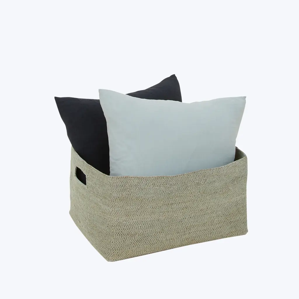 An easy way to elevate your everyday spaces, this Essential Low Basket is handwoven in India from natural seagrass. This multipurpose basket can easily be transported from room to room and used to keep any busy space tidy. This low storage basket is available in 7 colors to match your surroundings perfectly. Hawkins New York creates high-quality home goods that blur the line between form and function.
