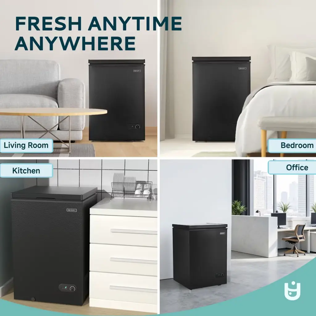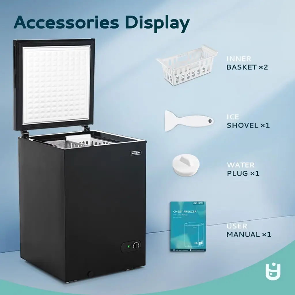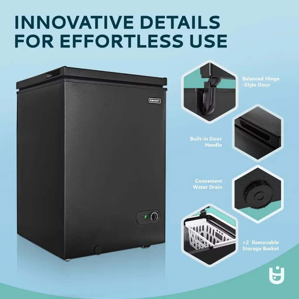 Euhomy 3.5 Cu. Ft. Chest Freezer With Removable Basket, Built-in/freestanding Mini Freezer, Black