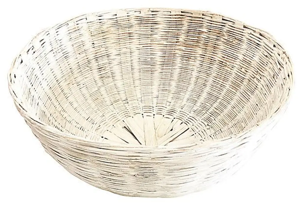 Ext. Large stylish distressed white rattan white round basket. Substantial in size and impact measuring nearly 30" in diam. Can be used as wall art or children's toys etc. Want to explore more products at Antiquelifestyle. To SHOP simply click on my name, to the right of any listing highlighted in BLACK "Antiquelifestyle" and you will be directed to my storefront! Regards, Laurie WE COMBINED SHIPPING If you purchase more than one item you may initially be charged extra shipping costs at checkout. However, I always combine items into one box when possible. I will contact Chairish team to promptly refund any overage paid on shipping costs to you.