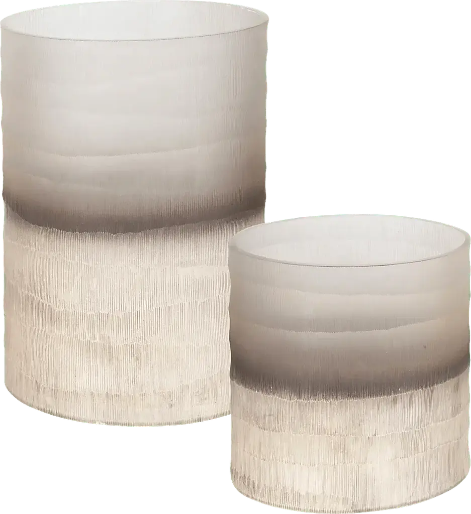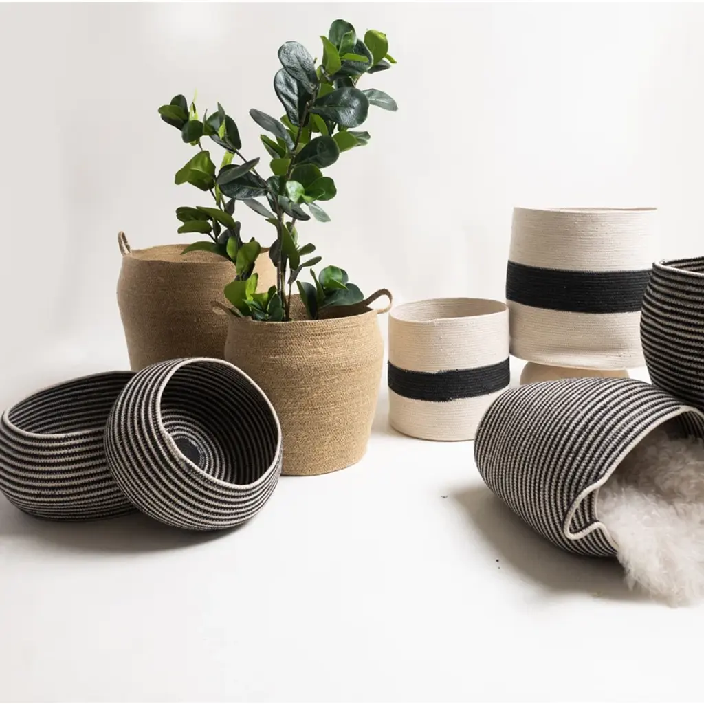 Hand woven with natural fibers, this set of two stylish baskets offers a modern design aesthetic to organize any space. Each basket is uniquely crafted bringing a touch of natural beauty to your home.