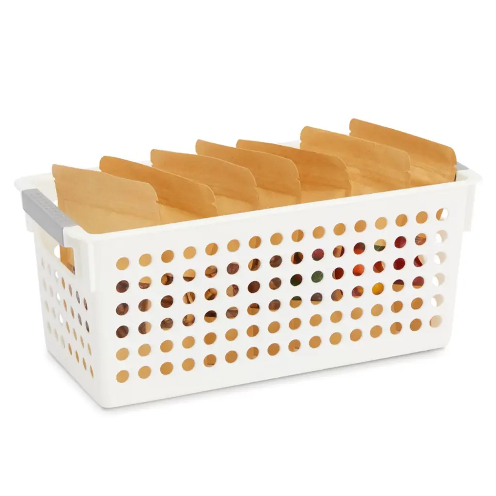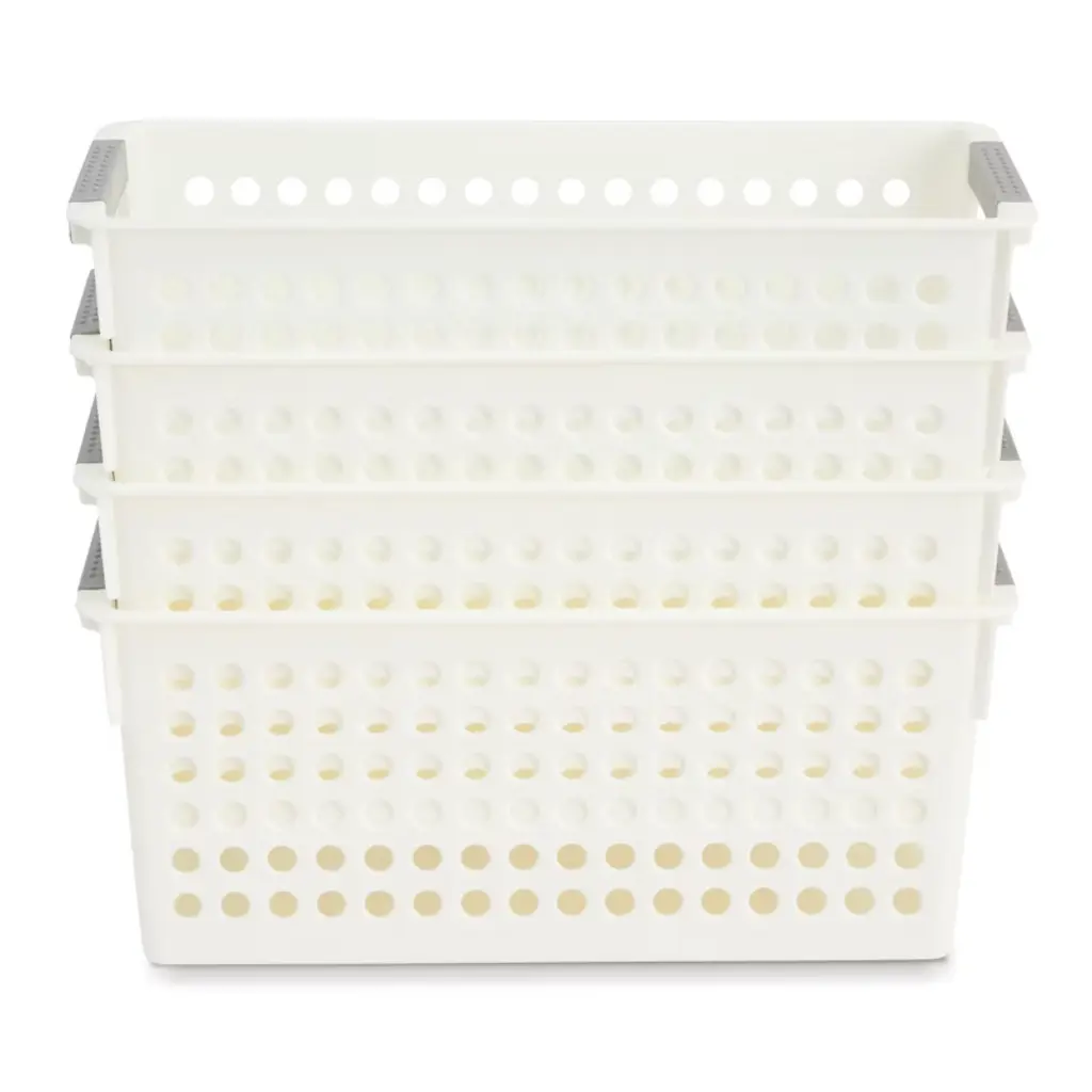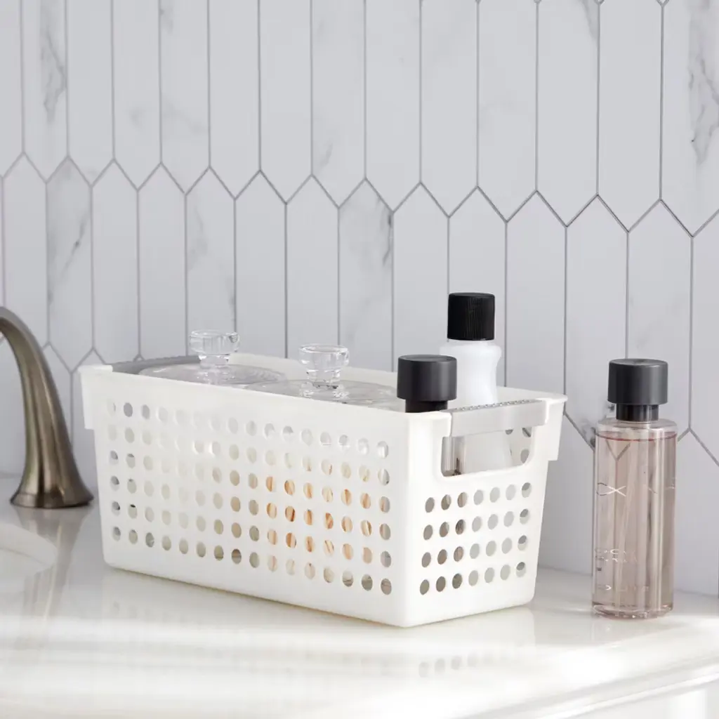 Farmlyn Creek 4 Pack Plastic Baskets For Organizing, Small Bins With Handles For Kitchen, Bathroom, Laundry, Shelf (White, 5 Inches)