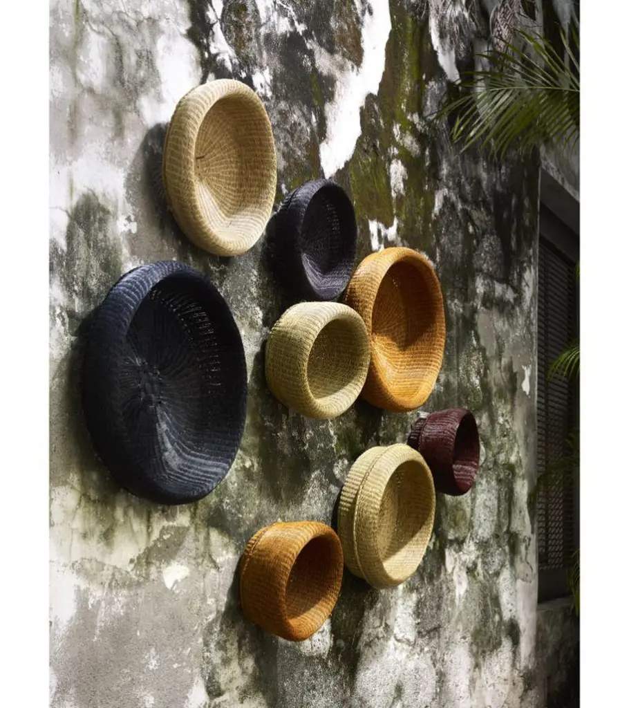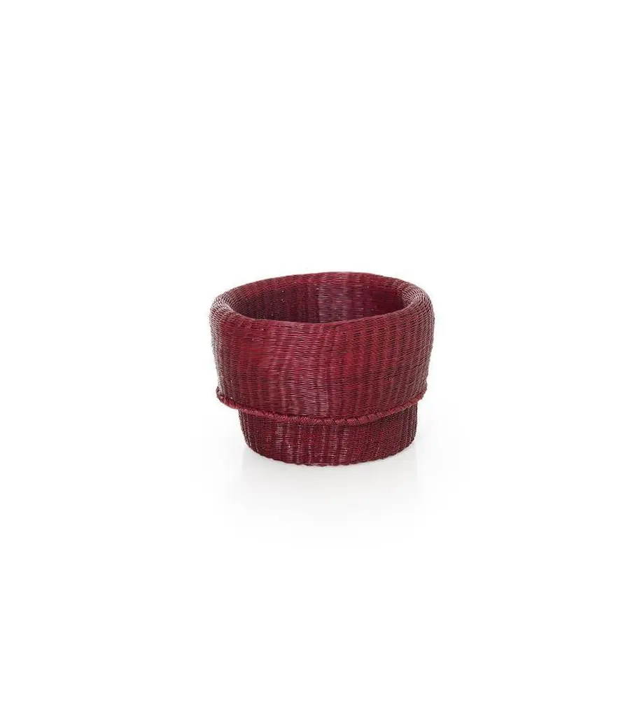 Fibra smal basket by Sebastian Herkner.Materials: 100% Esparto grass. Technique: Hand-woven in Colombia. Dimensions: diameter 33 cm x width 22 x height 18 cm Available in colors: natural, red, black, and, cobre. And other sizes.The Fibra basket, a design by Sebastian Herkner, makes everyday life a little more beautiful. You can use the basket, available in three sizes and four colors, as a fruit bowl on the dining table, a tray for keys and mail in the hallway, or to store towels neatly in the bathroom. Each basket is handcrafted in Colombia using Esparto grass for these woven baskets. The grass grows wild in the Colombian highlands, starting from an altitude of 2,600 meters. After it’s been cut, the grass is dried and dyed, using mainly natural pigments. Just this preparation of the grass takes seven days, while the actual weaving is done in three to six days, depending on the size of the basket.German designer Sebastian Herkner is a long-term collaborator of Ames and has visited Colombia multiple times to experience the country’s cities, nature and people first hand. He also visited many of the ateliers that Ames has partnered with to learn about the unique traditional crafts of Colombia's regions. A sought-after contemporary designer and recipient of many industry awards, he has worked with many international design brands, creating intriguing pieces that showcase his intuition for interesting material, color, and texture combinations.