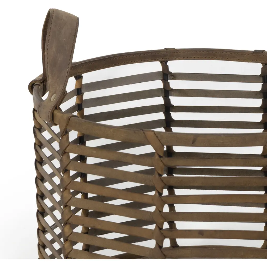 Blending form and function, this handsome basket is woven by hand from sturdy natural leather. The Finn is the perfect functional decor piece for your home. This basket can stand alone as sculptural decor thanks to the intricate pattern woven into its leather base when not holding blankets, magazines, or your pet's toys.