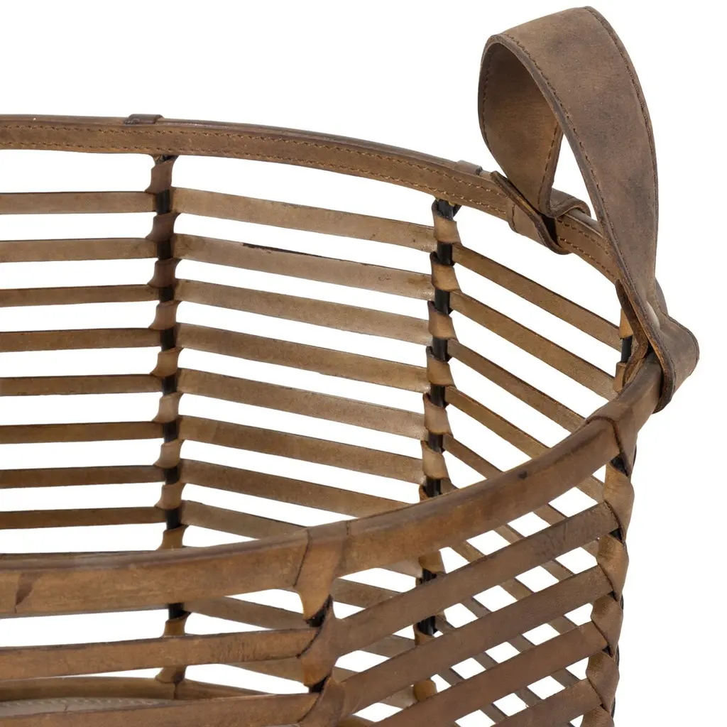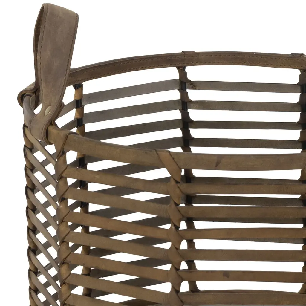 Blending form and function, this handsome basket is woven by hand from sturdy natural leather. The Finn is the perfect functional decor piece for your home. This basket can stand alone as sculptural decor thanks to the intricate pattern woven into its leather base when not holding blankets, magazines, or your pet's toys.