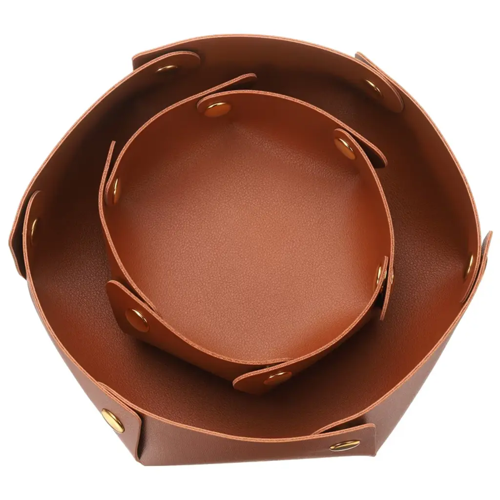 Flora Chocolate And Cappuccino Leather Serving Basket