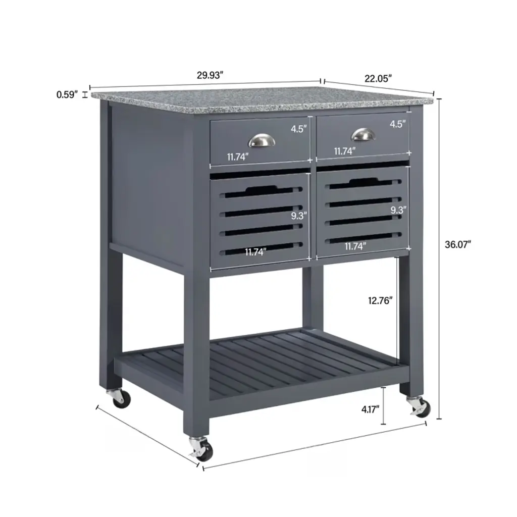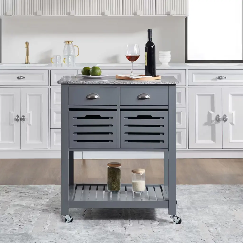 This kitchen island attracts with ample drawer storage, a spacious prep/dining area, ventilated bins for freshness, mobile convenience, and multi - functional design. Perfect for organized, flexible kitchen setups.