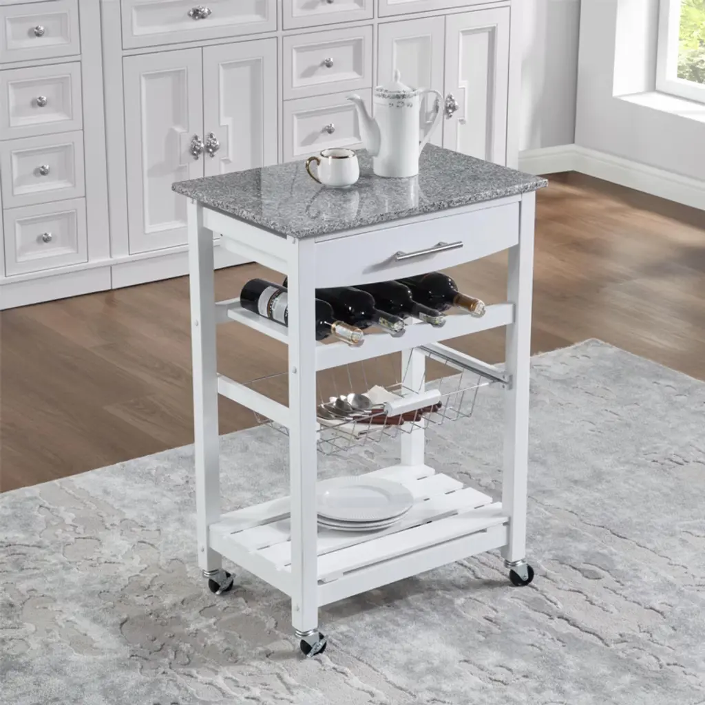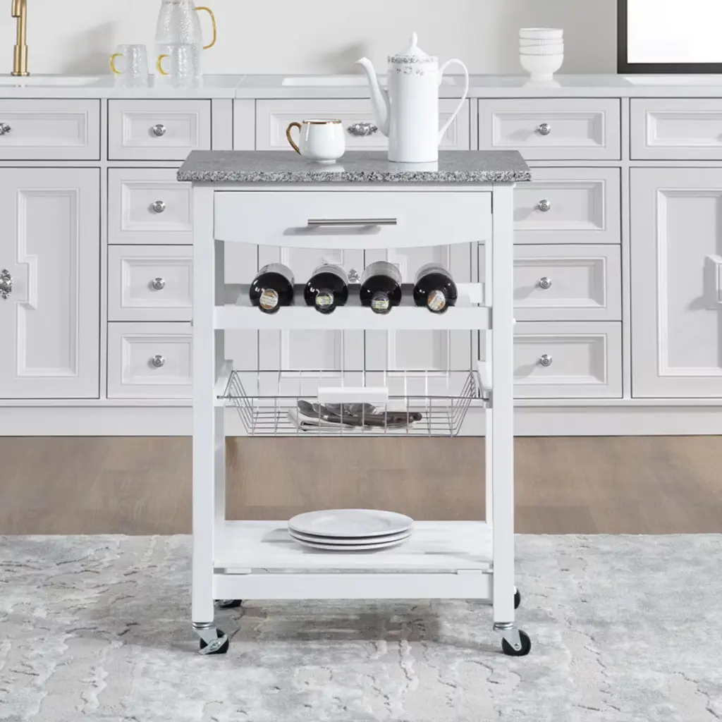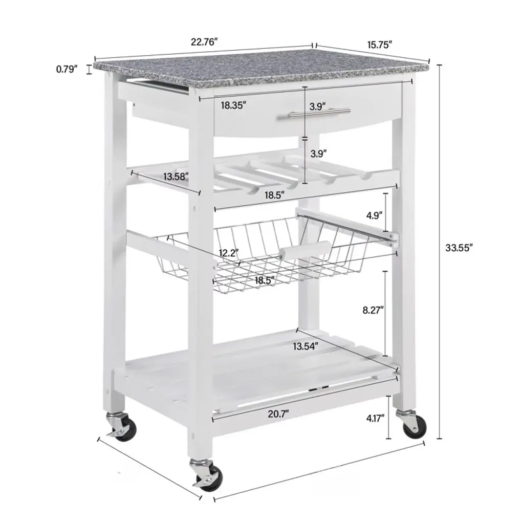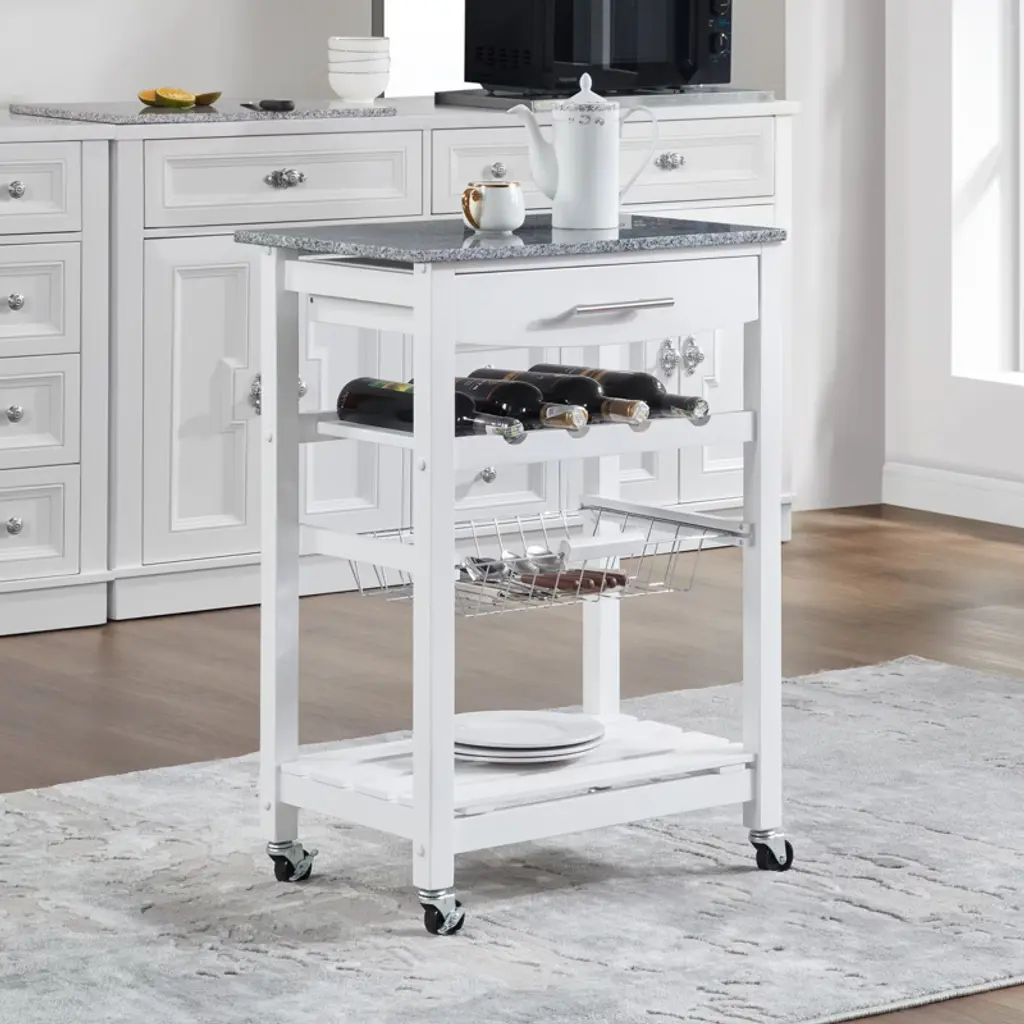 Fontoi Mobile Rolling Kitchen Island With Underneath Drawer, Trolley Serving Cart Slide-out Wire Storage Basket, White, 15.75"*33.55"*22.76"