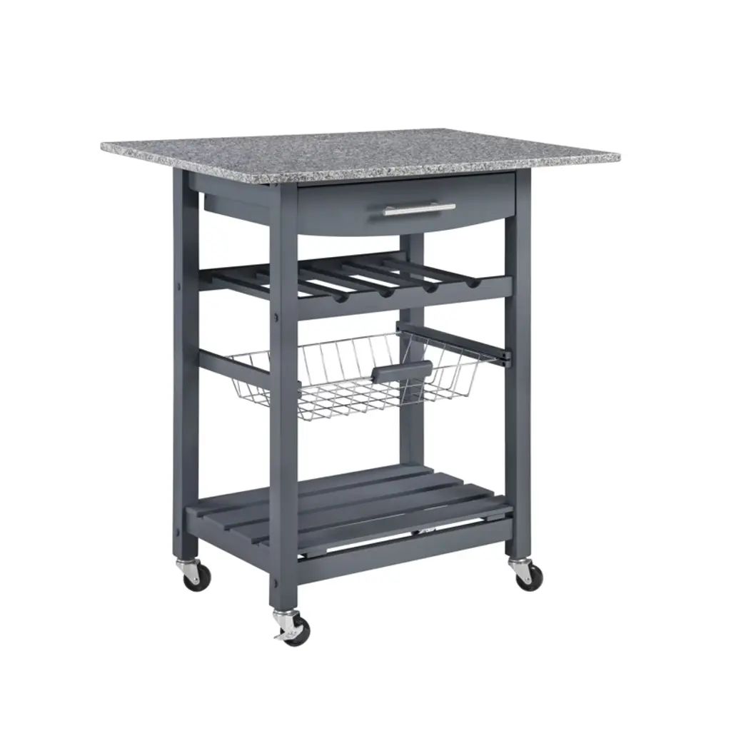 This kitchen island has 4 casters for mobility, offers versatile storage with drawer and basket, features compact size, multi - function use on stainless top, and integrates easily into any kitchen style.
