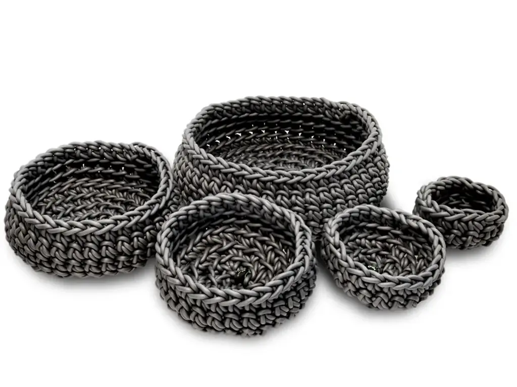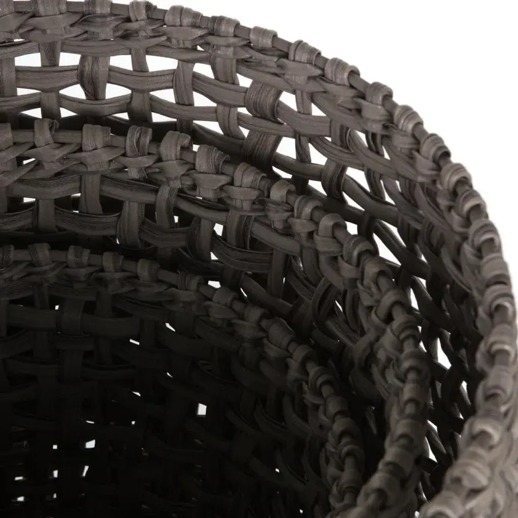 Three round baskets in natural tones add a bit of bohemian charm. Made from recycled plastics, each is a bit different. Safe for outdoor spaces — cover or store indoors during inclement weather and when not in use. Assembly Required? No