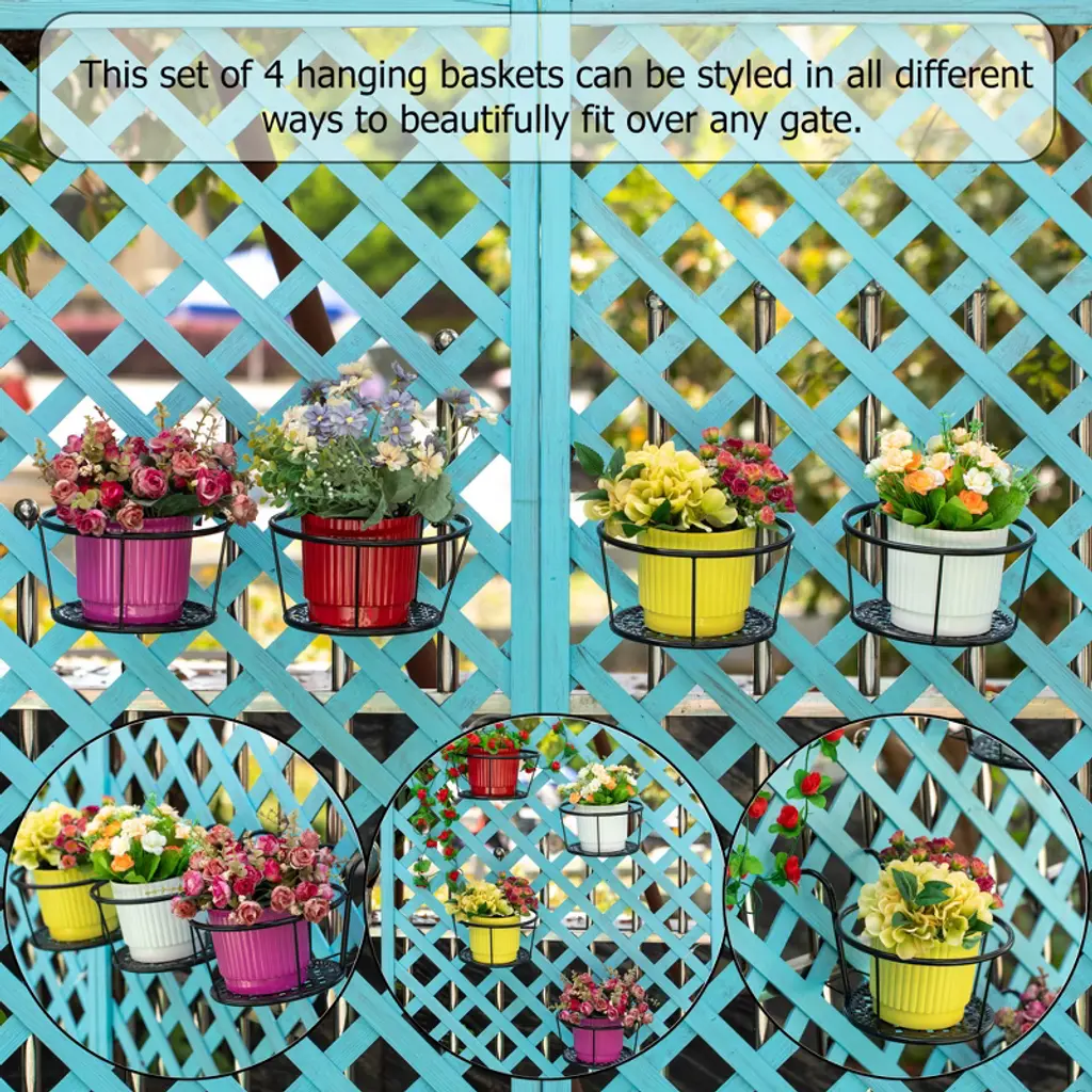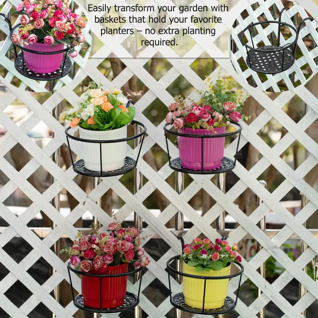 Gardenised Set Of 4 Decorative Round Iron Hanging Bucket Style Plant Pot Holders And Flower Baskets With Hooks