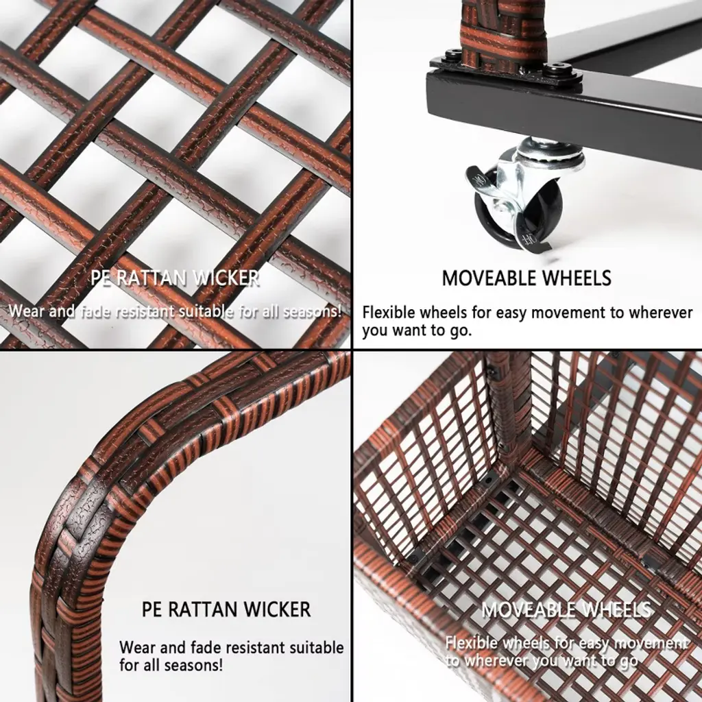 Garvee Poolside Float Storage, Patio Poolside Float Storage Basket, Pe Rattan Outdoor Pool Caddy With Rolling Wheels For Floaties, Patio, Pool, Brown