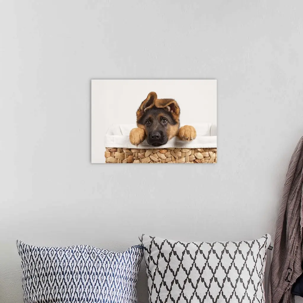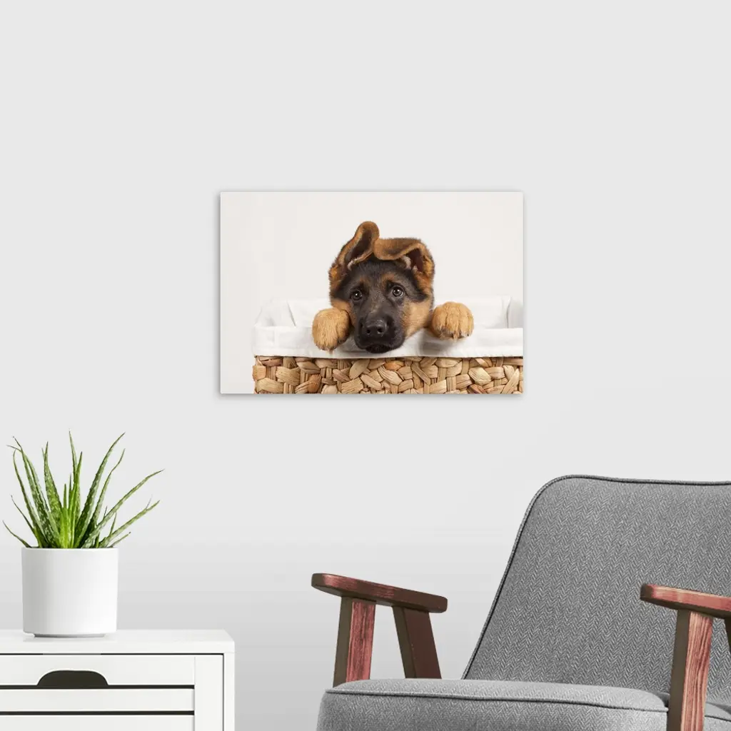 German Shepherd Puppy Inside A Basket