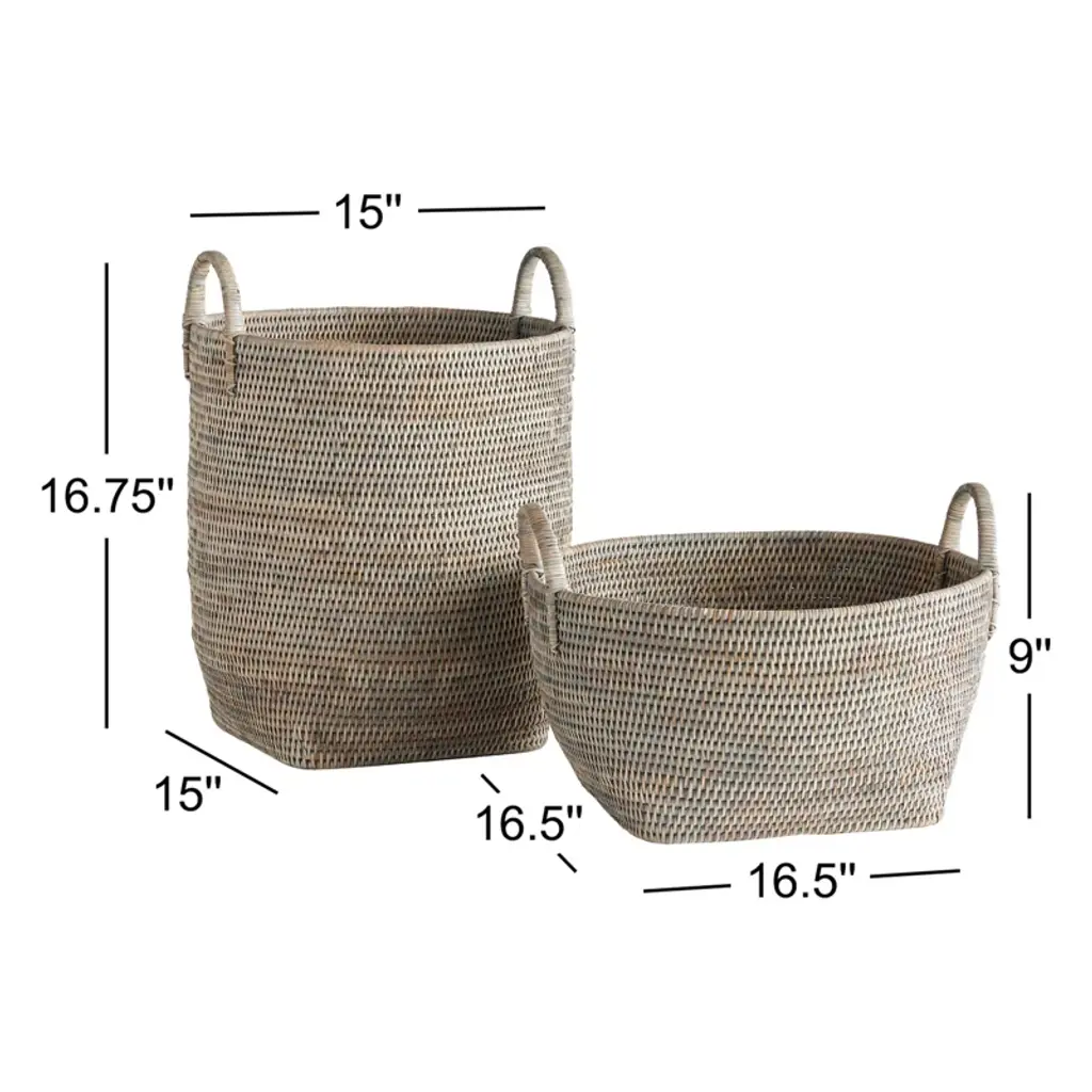 With one short and one tall profile, this versatile set is great for organizing odds and ends. The tight weave and gray washed finish make them the perfect vessels to stylishly store whatever you decide.