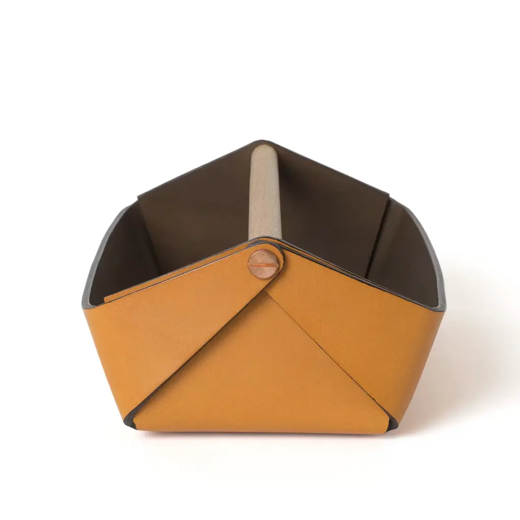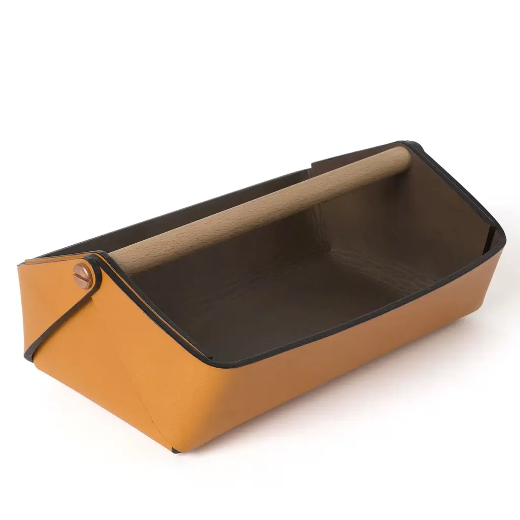 Toolboxes once used by workers inspired the compact design of this exclusive basket deftly crafted from a single sheet of precious leather. Practicality is ensured by the cylindrical wooden handle - fitted to the sides thanks to discreet screws - while the lack of stitching further speaks to the basket's contemporary artisan allure. Please contact the Concierge for array of available color and size variants.