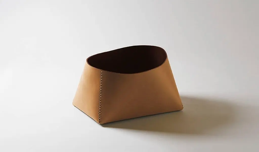 "Giovanni" is a leather basket, designed by Claude Bouchard and manufactured by Oscar Maschera, and is part of Foglia Couture collection. Genuine Italian leather vegetable tanned. Colors combination to be chosen from the available range: tan, sienna, orange, red, red-purple, dark brown, khaki, blue, black.DIMENSIONS:Ø 14.5", H. 15.7"Two hides together, one single layer of leather. Two different colors, one for the inside and the other for the outside. Few precise cuts on a whole surface, a few pleats held together by hand stitching: the object has taken shape. Strong thickness, raw edges, dyed edges, contrasting stitching: the details of craftsmanship. Leather, robust and soft, which maturates over time like wood, wine, brandy and cheese, is a material suitable for a living relationship with people and things it has to do with: it absorbs their scent and gives its own. It protects, gathers and changes shape, as it retains something of the life it once had.Past experiences in working with leather, with objects of common use transformed into their own form by the material of which they were made (baskets, boxes, trays, writing-desk items, small pieces of furniture, in addition to bags and cases, of course) have led Oscar Maschera to today’s production which has exceeded even the limits of explicit reality to get the pure form of the objects, reaching beyond the risky limit of mere functionality.CLAUDE BOUCHARD, interior architect and designer by training, is well known for his pieces of design in ceramics, porcelain, glass, metal and wood for firms such as Hermès, Puiforcat, Porcelaines Bernardaud, Faïenceries de Gien and the Musée des Arts décoratifs de Paris in France, Triangolo in Italy, Anthologie Quartett in Germany and Vista Alegre in Portugal.He has been artistic director of Puiforcat, the silversmith subsidiary of the Hermès group (2007 – 2009). Claude Bouchard’s work is focused on the physical, emotional and esthetic relationship between the object or space created and people who use or experience it. He has always questioned the simplicistic principle of “purity” and “functionalism”.During all his work Bouchard has been trying to bring a profoundly contemporary form of expression to traditional techniques and materials and thus to help the conservation and renewal of those endangered techniques. Claude Bouchard lectures both for the architecture Department of Columbia University and at the Camondo School of design and interior architecture.Claude Bouchard’s work has been shown at the Galleria Blanchaert in Milan, at the Biennale di Faenza, at Max Alto and the Square de Vergennes Gallery in Paris, at the Biennale de St. Etienne, and at the craft in several retrospective exhibits in France, Belgium and Japan and several of his works are now in museum collections (Musée des Arts décoratifs Paris, Musée des Arts décoratifs et des Textiles de Lyon, etc).