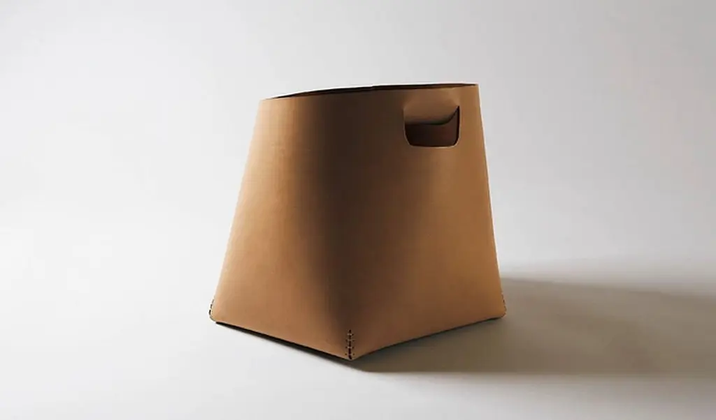 "Giulia" is a leather basket with handles, designed by Claude Bouchard and manufactured by Oscar Maschera, and is part of Foglia Couture collection. Genuine Italian leather vegetable tanned. Colors combination to be chosen from the available range: tan, sienna, orange, red, red-purple, dark brown, khaki, blue, black.DIMENSIONS:Ø 14.5", H. 15.7"Two hides together, one single layer of leather. Two different colors, one for the inside and the other for the outside. Few precise cuts on a whole surface, a few pleats held together by hand stitching: the object has taken shape. Strong thickness, raw edges, dyed edges, contrasting stitching: the details of craftsmanship. Leather, robust and soft, which maturates over time like wood, wine, brandy and cheese, is a material suitable for a living relationship with people and things it has to do with: it absorbs their scent and gives its own. It protects, gathers and changes shape, as it retains something of the life it once had.Past experiences in working with leather, with objects of common use transformed into their own form by the material of which they were made (baskets, boxes, trays, writing-desk items, small pieces of furniture, in addition to bags and cases, of course) have led Oscar Maschera to today’s production which has exceeded even the limits of explicit reality to get the pure form of the objects, reaching beyond the risky limit of mere functionality.CLAUDE BOUCHARD, interior architect and designer by training, is well known for his pieces of design in ceramics, porcelain, glass, metal and wood for firms such as Hermès, Puiforcat, Porcelaines Bernardaud, Faïenceries de Gien and the Musée des Arts décoratifs de Paris in France, Triangolo in Italy, Anthologie Quartett in Germany and Vista Alegre in Portugal.He has been artistic director of Puiforcat, the silversmith subsidiary of the Hermès group (2007 – 2009). Claude Bouchard’s work is focused on the physical, emotional and esthetic relationship between the object or space created and people who use or experience it. He has always questioned the simplicistic principle of “purity” and “functionalism”.During all his work Bouchard has been trying to bring a profoundly contemporary form of expression to traditional techniques and materials and thus to help the conservation and renewal of those endangered techniques. Claude Bouchard lectures both for the architecture Department of Columbia University and at the Camondo School of design and interior architecture.Claude Bouchard’s work has been shown at the Galleria Blanchaert in Milan, at the Biennale di Faenza, at Max Alto and the Square de Vergennes Gallery in Paris, at the Biennale de St. Etienne, and at the craft in several retrospective exhibits in France, Belgium and Japan and several of his works are now in museum collections (Musée des Arts décoratifs Paris, Musée des Arts décoratifs et des Textiles de Lyon, etc).