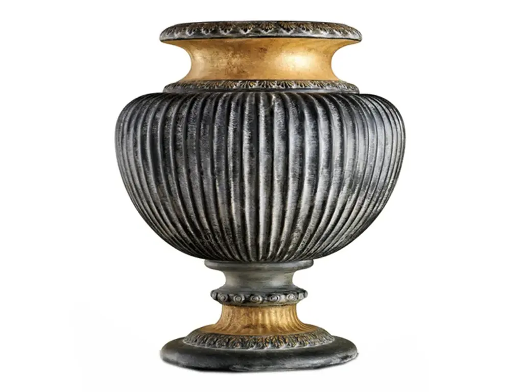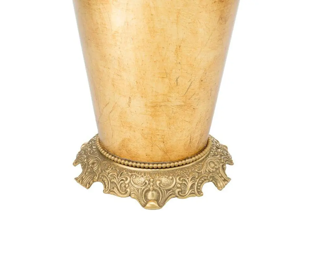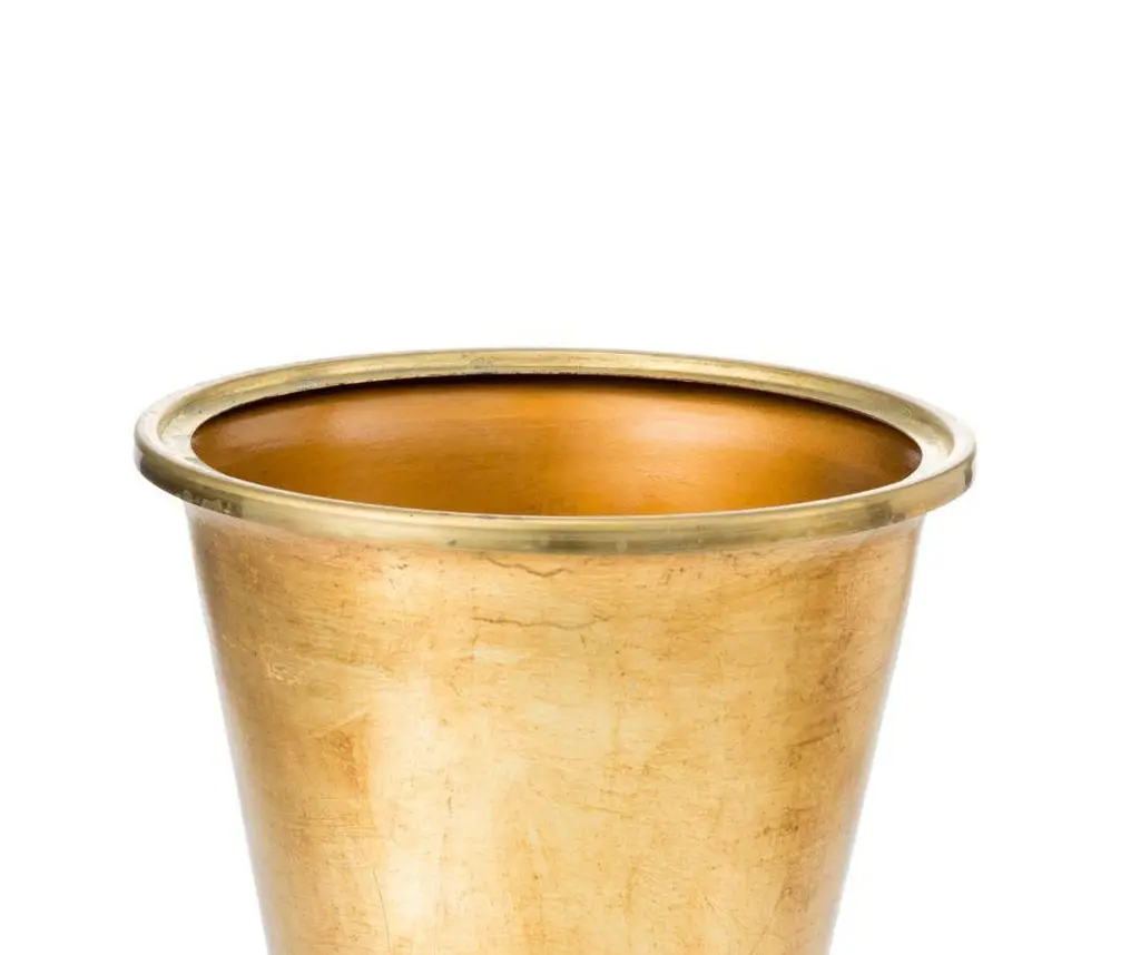 Alluminum waste basket with brass friezes decoration. This waste basket features a durable structure made of brass and aluminum, ensuring long-lasting use. Its sleek and stylish design adds a touch of elegance to any space, making it a perfect addition to your home or office. Keep your surroundings clean and tidy with this functional and beautiful waste basket.