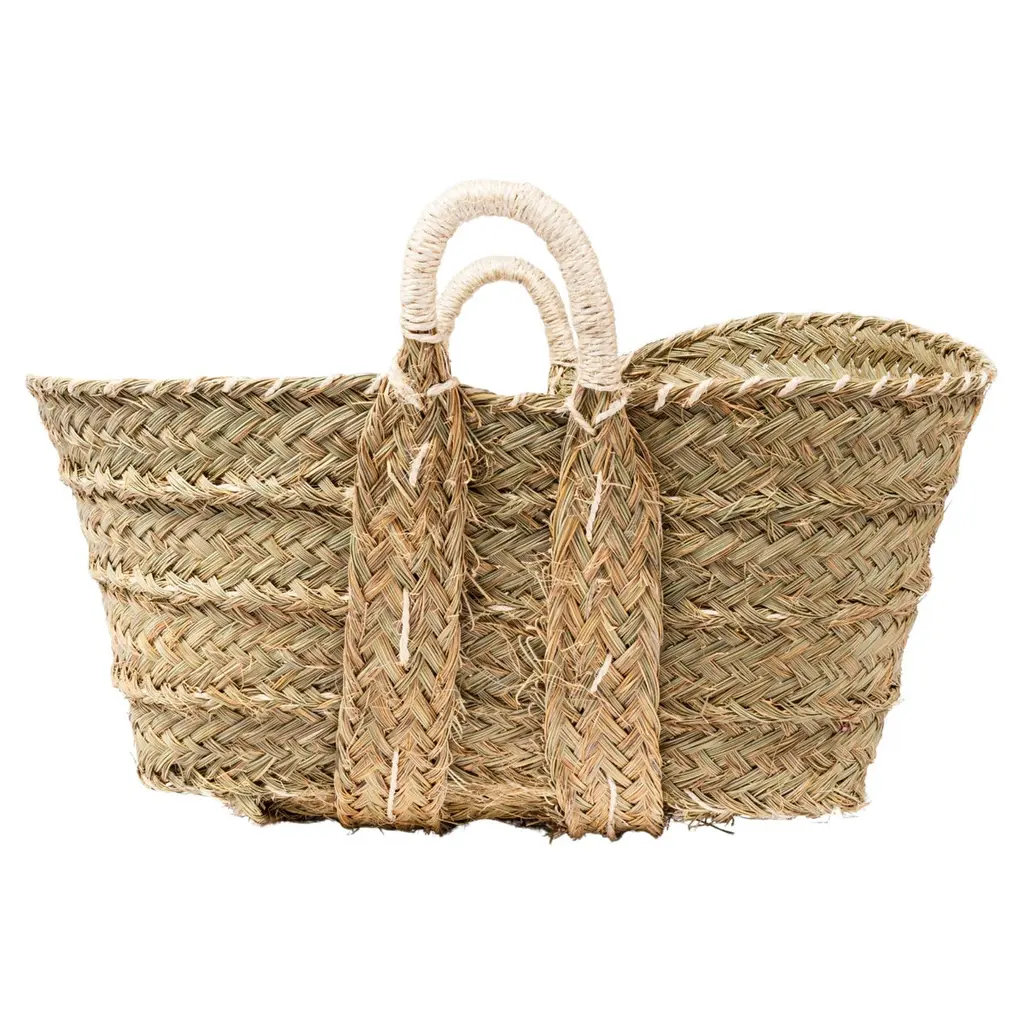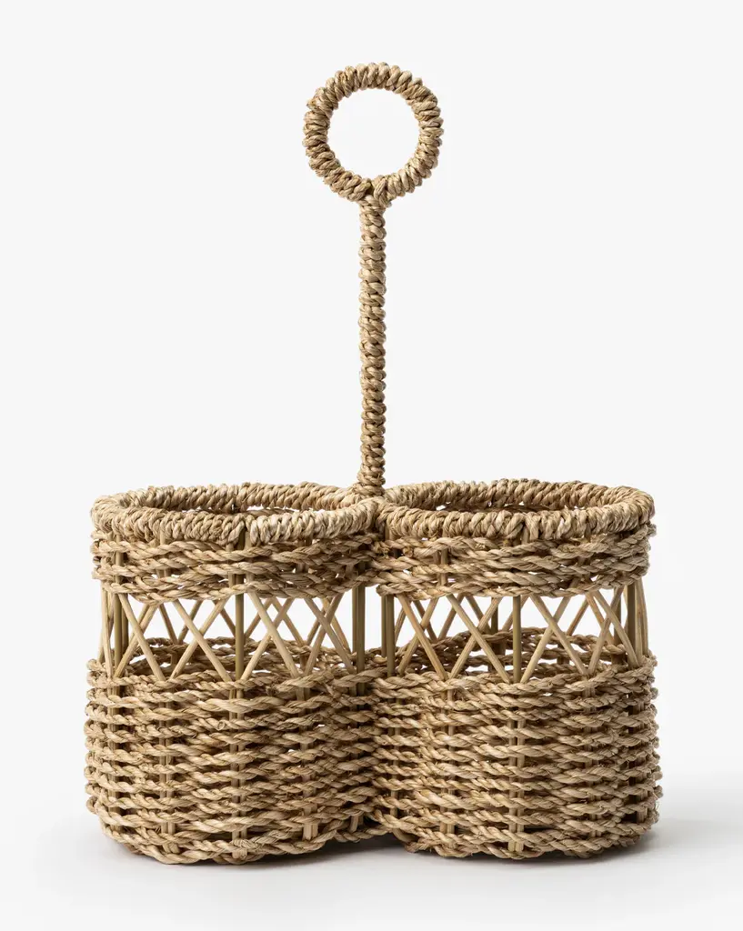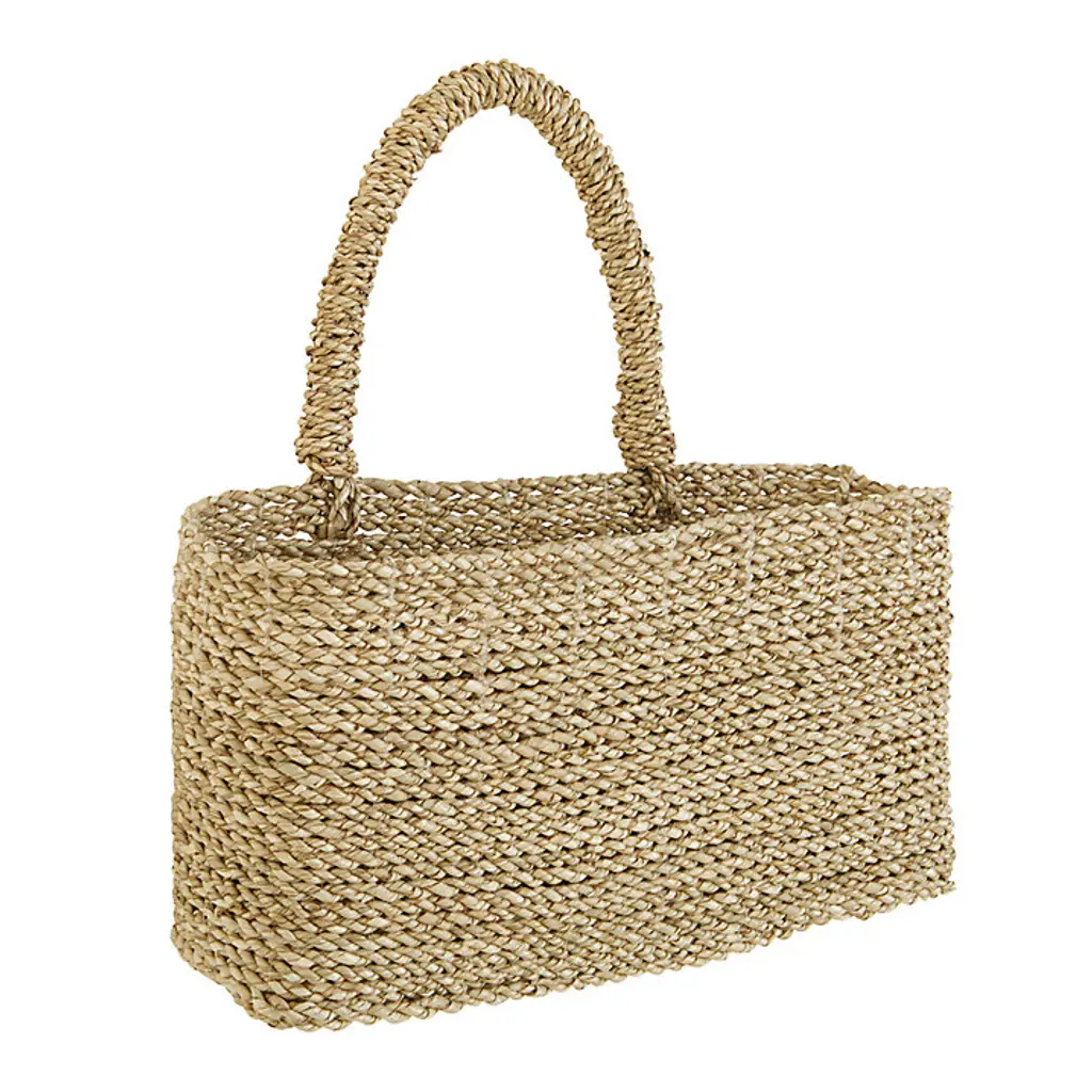 Rich texture to warm your walls and fill your inner decorator's heart with gratitude. These stylish wall baskets are hand woven in a refined horizontal weave of natural seagrass. Each style has a single loop handle for easy hanging. We love these decorative woven baskets brimming with colorful dried flowers, for catching incoming mail or dog leashes in the entry, or simply as 3-dimensional wall art. Gratitude Basket features: