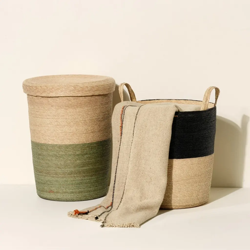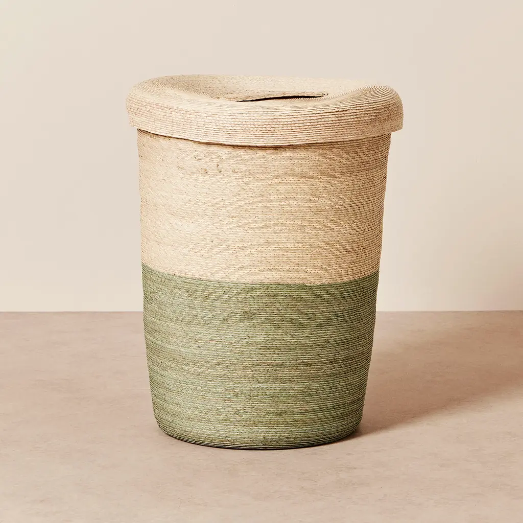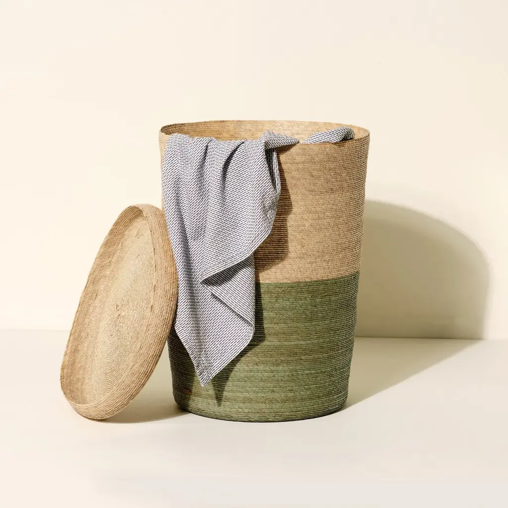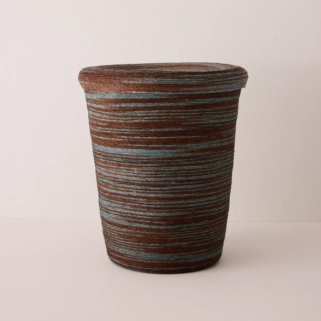 Creating products that connect nature, culture, and tradition, Makaua effectively combines artistry with utility. This hamper is one example: Crafted from soft, pliable palm, its subtle conical shape offers plenty of space to hold your laundry. Its natural upper portion is nicely contrasted by a pop of color at the base. Simple and attractive—no need to tuck your hamper out of site any longer. The baskets are hand-woven and hand-dyed so there may be slight variations in color.