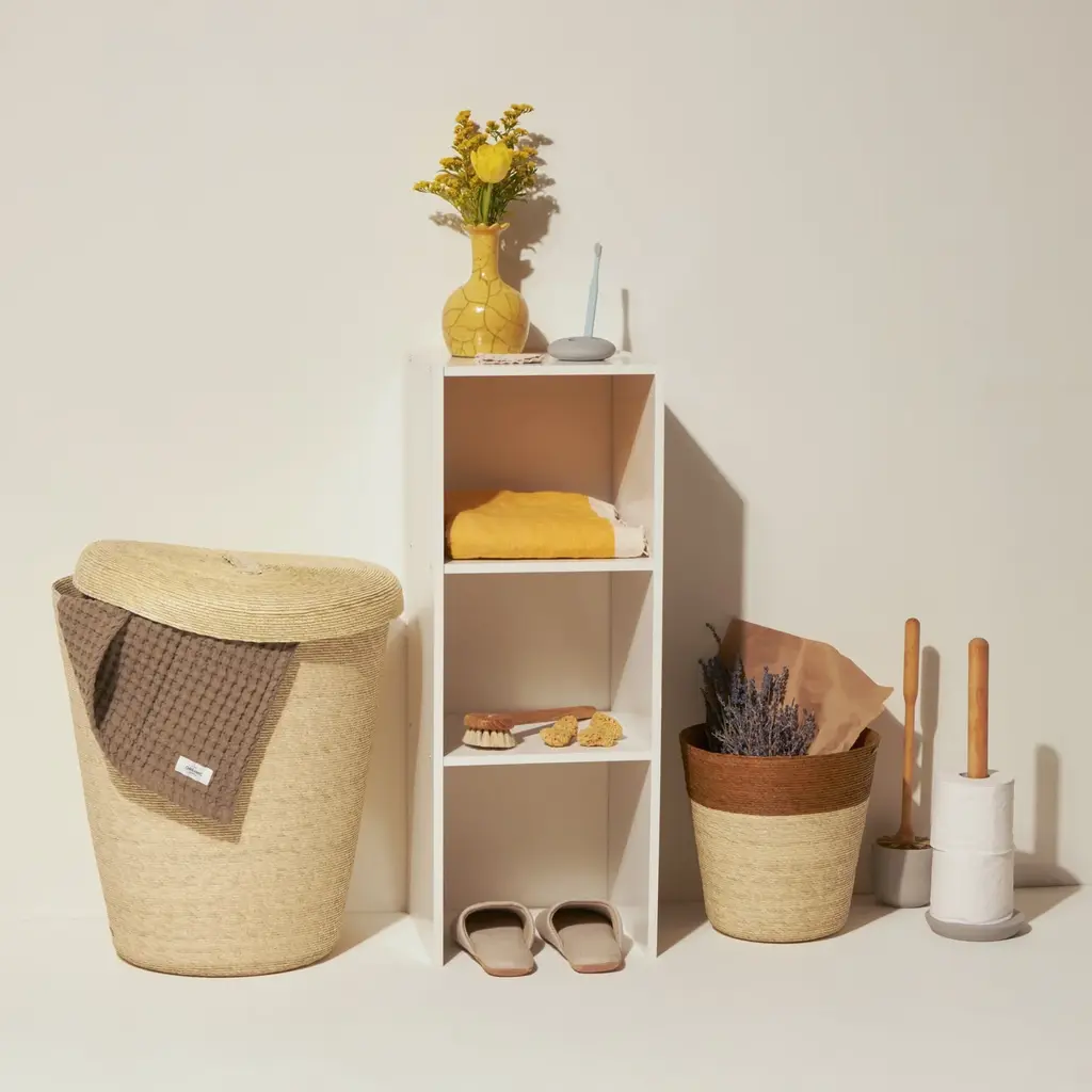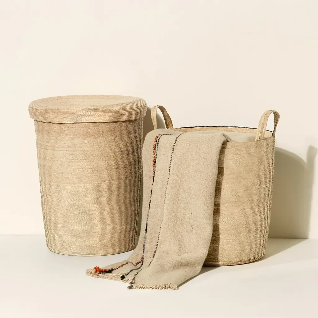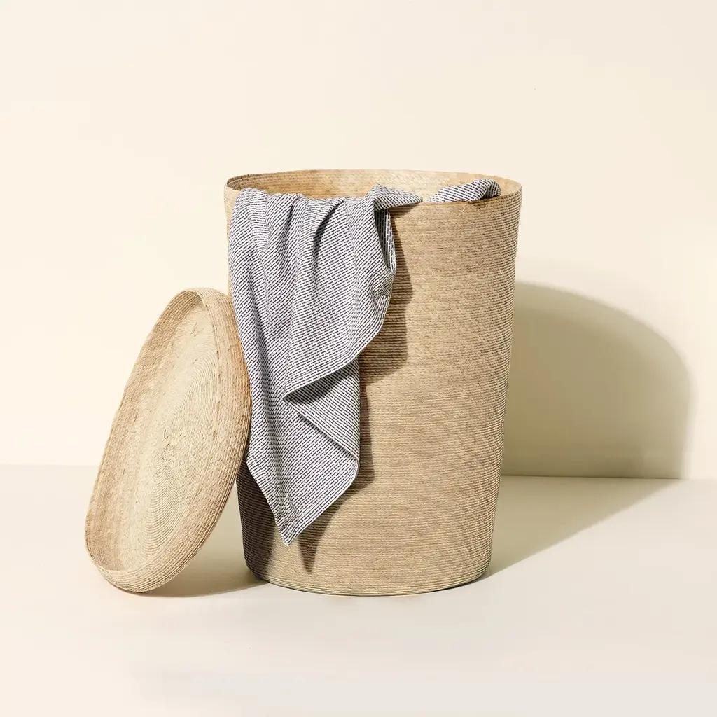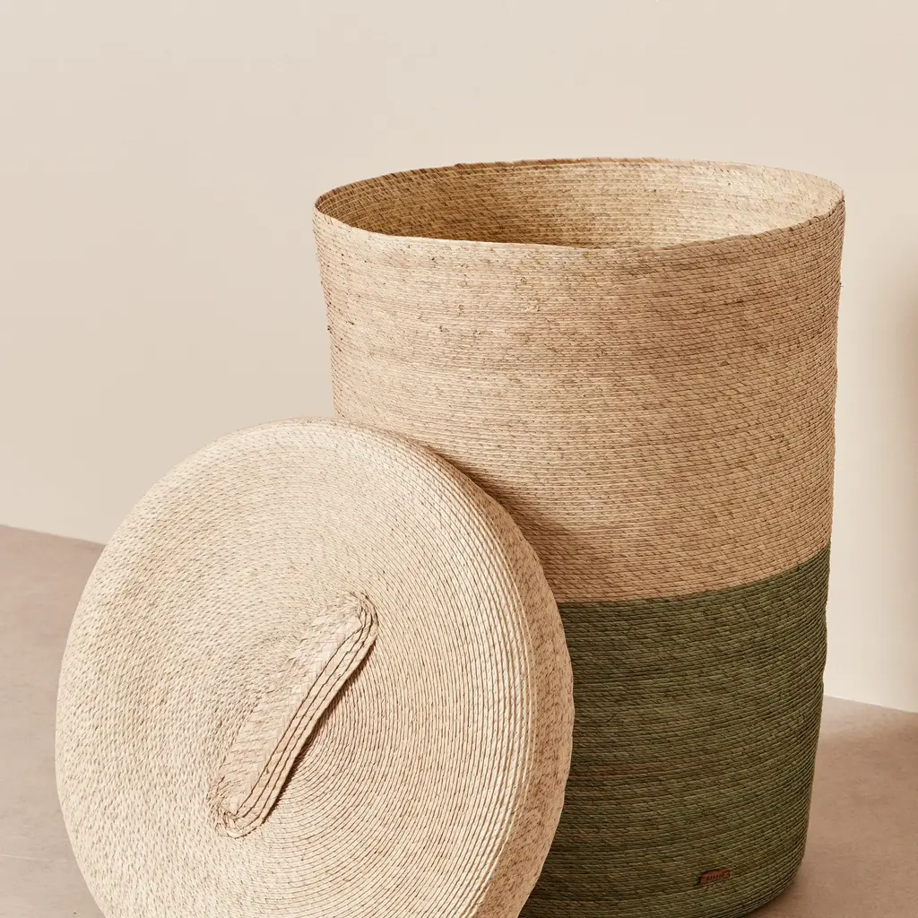 Creating products that connect nature, culture, and tradition, Makaua effectively combines artistry with utility. This hamper is one example: Crafted from soft, pliable palm, its subtle conical shape offers plenty of space to hold your laundry. Its natural upper portion is nicely contrasted by a pop of color at the base. Simple and attractive—no need to tuck your hamper out of site any longer. The baskets are hand-woven and hand-dyed so there may be slight variations in color.
